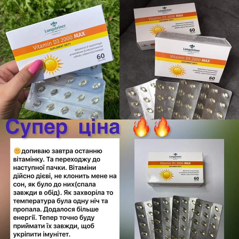 АКЦІЯ‼️АКЦІЯ‼️‼️‼️ Солнечный витамин вновь ДОСТУПНЫЙ ДЛЯ ЗАМЛЕНИЯ 🙂 ‼️ВИТАМИН D3🌞 2000max,60таб ПРЕДУПРЕЖДЕНИЯ ХОРОШИХ НАСТРОЙ И ПРОЧНОГО ИМУНИКЕНТА Эффект от применения: Диетическая добавка является дополнением к ежедневному рациону взрослых. Витамин D, содержащийся в добавке: • помогает поддерживать здоровье и прочность костей и зубов; • участвует в правильном усвоении кальция и фосфора и поддерживает правильную концентрацию кальция в крови; • участвует в процессе деления клеток; • поддерживает правильное функционирование иммунной системы; • помогает снизить риск переломов, связанных с поступорной нестабильностью и мышечной слабостью. Что вы получите? • здоровую и сияющую кожу, сильные волосы • мощную помощь для укрепления скелета и зубов • сезонную поддержку иммунной системы и устойчивость к простудным заболеваниям • снижение риска сердечных заболеваний • профилактику дефицита витамина D3 • Приподнятое настроение в любую погоду. ✅️Профилактическая доза для взрослых - 1 капсула в день. 60 капсул Кому?
