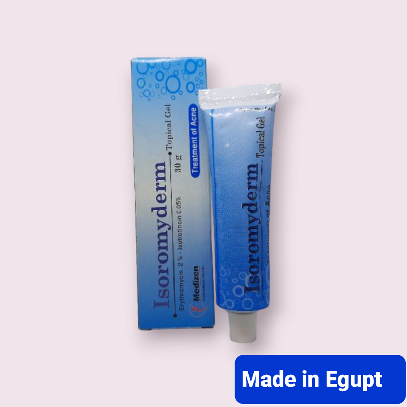Виробник: Оригинал Тип виробу: Інші вироби Купити Isoromyderm Гель проти вугрів Ізотретиноїн Еритроміцин 30г Єгипет Склад: Кожні 100 грамів гелю містить: Ізотреноїноїн 0.05 г Еритроміцин 2 г Допоміжні компоненти: Гіпромелоза, пропіленгліколь, етанол 99.9%. Властивості: Протимікробний засіб для місцевого застосування. Ізокретиноїн являє собою одну з біологічно активних форм вітаміну А, має антисеборейну, протизапальну та кератолітичну дію. Чинить стимулювальний вплив на ріст клітин епітелію та їхнє диференціювання. Гальмує термінальне диференціювання себоцитів і гіперпроліферацію епітелію виводних проток сальних залоз, нормалізує склад їхнього секрету та полегшує його виведення, зменшує вироблення шкірного сала та знижує запальну реакцію навколо сальних залоз. Впливає на комедоногенез, гальмує фолікулярну кератинізацію, запобігає виникненню вугрів, спричинених Propionibacterium acne. Еритроміцин — антибіотик із групи макролітів, об'єднується з 50S суб'єдинкою рибосом, що порушує утворення пептидних зв'язків між молекулами амінокислот і блокує синтез білків мікроорганізмів (не впливає на синтез нуклеїнових кислот), має бактеріостатичний ефект щодо Propionibacterium acne. Показання: Вугровий висип слабкого або середнього ступеня вираженості. Спосіб застосування та дози: Зовнішньо, дорослим і підліткам з 12 років: препарат наносять тонким шаром на уражену зону шкіри двічі на день: вранці (до нанесення макіяжу) і ввечері (після вмивання). Курс лікування — 6-8 нід. Протипоказання: Гіперчутливість, вагітність, період лактації, дитячий вік до 12 років (ефективність і безпека застосування не встановлені). Заходи безпеки: Треба уникати контакту препарату зі слизовими оболонками порожнини рота, носа та очей, а також з ушкодженою або витонченою поверхнею шкіри. Нанесення препарату на чутливі зони шкіри, як-от зона навколо очей і шиї, має проводитися з обережністю. У зв'язку з тим, що препарат може викликати підвищену чутливість до сонячних променів, треба уникати УФ-опромінення. На 1-2 нед лікування можуть виникнути місцеві реакції — парастезії, печіння, подразнення, гіперемія та лущення шкіри. Зазвичай вони зникають під час продовження приймання препарату. У разі різко вираженої реакції лікування треба перервати на кілька днів і відновити терапію після зникнення симптомів. Якщо побічні ефекти не зникають, лікування треба скасувати. Побічні ефекти: Місцеві реакції: парестезії, печіння й подразнення шкіри; гіперемія та лущення шкіри; фотосенсибілізація.