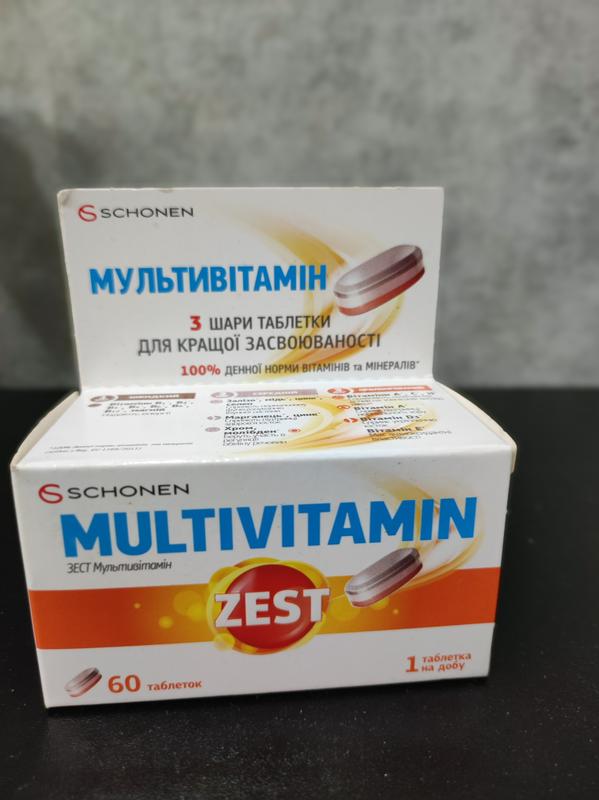 Применись как диетическая добавка для взрослых и детей старше 12 лет, как дополнительный источник витаминов и минеральных веществ в связи с повышенной потребностью или при снижении поступления их с пищей для поддержания физиологической жизнедеятельности организма. Способ застаивания: Перед началом применения рекомендована консультация врача. Принимать по одной таблетке один раз в сутки после приема пищи. Не следует превышать рекомендуемую суточную дозу! Не использовать, если уже принимаете любые другие витамины. Не запивать горячими или алкогольсодержащими напитками! Состав: Быстрый слой. 1 фаза – высвобождение 5 минут Магней56,25 mg (мг) Витамин РР (витамин В3)16 mg (мг) Витамин В5 (кислота пантотенова)6 mg (мг) Витамин B61,4 mg (мг) Витамин B21,4 mg (мг) Витамин B11,1 mg (мг) Витамин В9 (кислота фолиевая)200 μg (мкг) Витамин B122,5 μg (мкг) Средний слой. 2 фаза – высвобождение 45 минут Железо14 mg (мг) Цинк10 mg (мг) Марганец2 mg (мг) Медь1 mg (мг) Молибден50 μg (мкг) Селен50 µg (мкг) Хром25 µg (мкг) Пролонгований шар. 3 фаза – полное высвобождение 8 часов Витамин C80 mg (мг) Витамин E12 mg (мг) Витамин A800 μg (мкг) Витамин H50 μg (мкг) Витамин D35 μg (мкг) Производитель: Швейцария