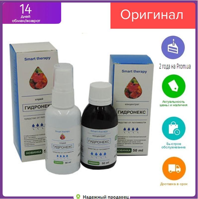 Кілька примірників у наявності Завдяки натуральним компонентам, що містяться в комплекті від пітливості Гідронікс, Ви швидко й безболісно позбутися підвищеної пітливості. Подвійний удар із проблеми, Спрей для зовнішнього застосування й Концентрат для розв'язання проблеми зсередини. Комплекс Гідронікс — це лікування гіпергідрозу всього за 1 курс. Як працює комплекс Нормалізує психоемоційний стан Нормалізує потовиділення Усуває неприємний запах Усуває причини підвищеного потовиділення. Завдяки натуральним компонентам, що містяться в комплект від пітливості Гідронікс, Ви швидко й безболісно позбутися підвищеної пітливості. Подвійний удар із проблеми, Спрей для зовнішнього застосування й Концентрат для розв'язання проблеми зсередини. Комплекс Гідроненс — це лікування гіпергідрозу всього за 1 курс. Як працює комплекс - Нормалізує психоемоційний стан - Нормалізує потовиділення - Усуває неприємний запах - Усуває причини підвищеного потовиділення Спрей Має інтенсивну проникну активність у нижні шари шкіри, швидку всмоктуваність, біодоступність і повне засвоєння. Нативний спрей не містить гормонів, синтетичних, лікарських, психотропних, генномодифікованих речовин і консервантів, не містить алюмосилікатів, гіпоалергенний, не впливає на кровообіг, не закупорюють пори, надає регульовану дію на функції та стан потових залоз. Концентрат Концентрат безпечний, гіпоалергенний. Можливе застосування в дитячому, підлітковому віці та під час вагітності для нормалізації та усунення порушень вегетативної, симптоматичної нервової системи, вегето-судинної дистонії, ендокринних порушень із симптомами підвищеного потовиділення. Чим Гідроненс кращий за інші аналоги: - Швидка допомога. Вбиває бактерії від самого початку застосування, порівнюючи з іншими засобами-аналогами. - Ефективна дія без побічних ефектів. Живі клітини рослин м'яко впливають на весь організм, зміцнюючи нервову систему. - Продукт гіпоалергенний. На відміну від більшості мазей та інших засобів, від гіпергідрозу. - Комплексне оздоровлення. Завдяки подвійному впливу, зсередини та зовні, ефект досягається в рази швидше (Концентрат 50 мл.+ Спрей із розпилювачем 50 мл.) Гіпергідроз або, іншими словами, підвищена пітливість — серйозна проблема та неприємне захворювання. Гіпергідроз виникає через порушення нервових закінчень у зоні долонь, пахв, стоп тощо. Захворювання часто супроводжується неприємним запахом. Причина неприємного запаху ніг і пахв полягає в тому, що в стані підвищеної пітливості починають розвиватися бактерії, які й викликають цей запах. "Гідронікс" допоможе вам впоратися з гіпергідрозом будь-якої стадії. Склад комплексу Концентрат (50 мл) - Габа Алішань. Допомагає у разі розладів вегетативної нервової системи - Саган-Далю. Стабілізує кров'яний тиск - Ісландський мох. Вбиває бактерії - Кора дуба. Нормалізує потовиділення - Ромашка. Усуває причини підвищеного потовиділення - Лапачо. Заспокоює нервову систему Спрей (50 мл) - Іланг-іланг. Допомагає впоратися з занепокоєнням, гнівом і потрясіннями - Гриб Рейші. Протимікробна дія - Шикша. Відновлює нервову систему - Вербена. Усуває неприємний запах Як застосовувати Гідроненс: - Концентрат. Приймати по 1 чайній ложці (5 мл) усередину на голодний шлунок за 30 хв до їди вранці та ввечері. Курс 20 днів. - Спрей. Використовува