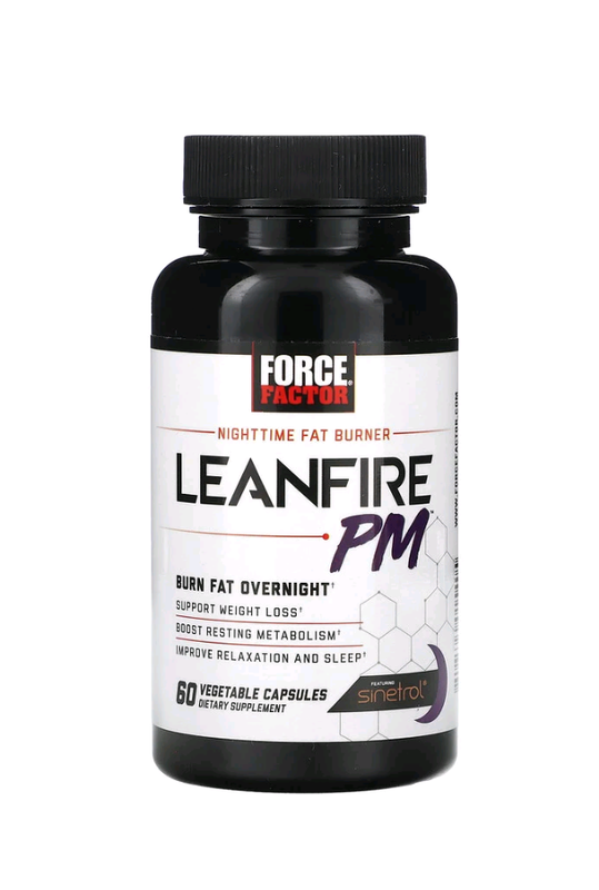Force factor leanfire pm, добавка для сжигания жира, для приема перед сном, 60 р...