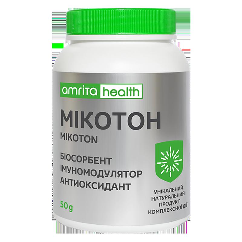 МИКОТОН -- это биологически активная добавка на основе натуральных грибных биополимеров: хитина, глюканов и меланинов. Препарат разработан в Национальной академии наук Украины, прошел широкие медико-биологические и клинические испытания, запатентован в России и патентуется в Европе. По своей эффективности Микотон превосходит известные японские, китайские и американские аналоги. СВОЙСТВА: МИКОТОН -- это щедрый дар Природы, он сочетает в себе комплекс уникальных свойств для поддержания и восстановления нашего организма: 1. МИКОТОН -- один из самых сильных биосорбентов. Он эффективно удаляет токсины, попадающие в организм с водой и пищей, в том числе тяжелые металлы, радионуклиды и шлаки, накапливающиеся при нарушениях работы печени, почек и желудочно-кишечного тракта, при этом он не нарушает минеральный обмен; 2. МИКОТОН -- мощный натуральный иммуномодулятор. Он способен быстро восстанавливать собственный иммунитет организма и противостоять болезням; 3. МИКОТОН -- представитель нового поколения антиинфекционных препаратов. Он эффективно подавляет развитие болезнетворных бактерий, вирусов, простейших и грибков, но, в отличии от известных препаратов, Микотон не токсичен, не имеет противопоказаний и эффектов последействия. 4. МИКОТОН обладает кровоостанавливающими и обезболивающими свойствами; ускоряет заживление ран. ПОКАЗАНИЯ К ПРИМЕНЕНИЮ: МИКОТОН устраняет первопричины многих заболеваний и поэтому имеет очень широкий спектр действия. Он эффективен при пищевых и алкогольных отравлениях, при лечении печени, желудочно-кишечного тракта и почек, при инфекционных заболеваниях, пониженном иммунитете, зашлакованности организма, аллергиях, склонности к онкологическим заболеваниям, диабете. И это не полный перечень. Принимайте МИКОТОН: • как профилактическое средство для очистки организма от различных шлаков, повышения устойчивости к инфекционным заболеваниям, для улучшения самочувствия, восстановления после физических нагрузок и пребывания в неблагоприятных условиях; • при болях в области печени, желудка, кишечника, при чувствах тяжести в мышцах и ломоты в костях -- он снимет неприятные и болезненные ощущения; • при гриппе и других инфекционных заболеваниях -- он понизит температуру, • значительно ускорит выздоровление и уменьшит страдания; • при появлении прыщей и гнойников на теле -- он сделает кожу чистой и гладкой; • при проявлении аллергических реакций -- он снимет их; • при отложениях солей в суставах и позвоночнике -- нормализует солевой обмен и приведет к их постепенному растворению; • в качестве ранозаживляющего присыпочного средства при ранениях, ожогах и язвах (в т. ч. трофических) -- они заживут быстро, безболезненно и бесследно; • для нормализации содержания холестерина в крови и профилакти сердечно- сосудистых заболеваний. Особое внимание Пожилым Людям! МИКОТОН значительно улучшит Ваше самочувствие, вернет бодрость и силы, сделает активными и жизнерадостными. СПОСОБ ПРИМЕНЕНИЯ И ДОЗЫ: • В качестве профилактического и общеоздоровительного средства: • МИКОТОН принимать после еды по 0,5 г 3 раза в день. 1 упаковка содержит 15 г препарата и рассчитана на 10-дневный курс оздоровления, которое желательно проводить через каждые 1 -- 2 месяца. Для детей до 7 лет разовая доза равна 0,25 г. • При пищевых и алкогольных отравл