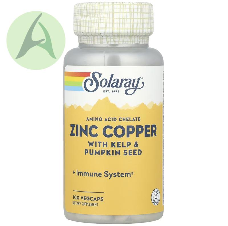 Solaray, цинк и медь с бурыми водорослями и тыквенными семечками, 100 капсул