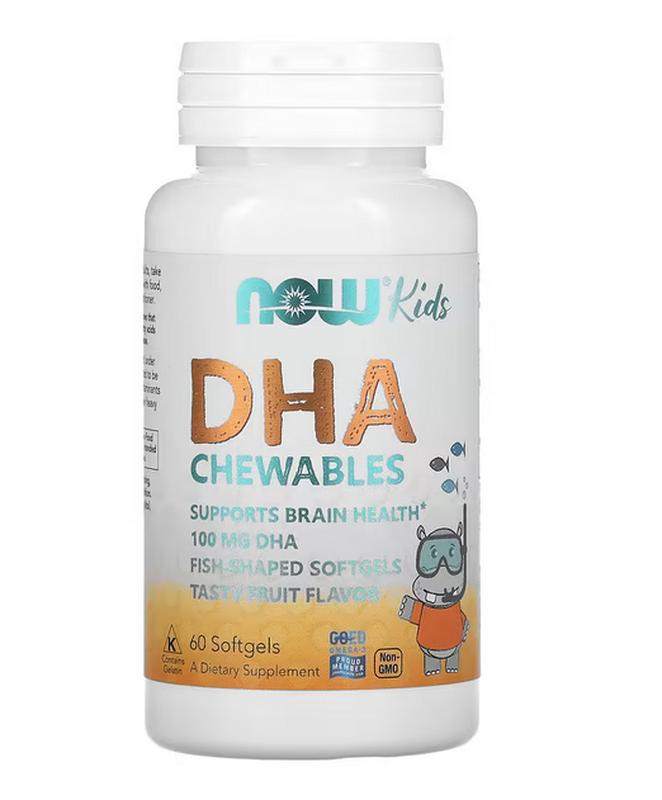 Омега-3 дгк для детей со вкусом фруктов, 60 жевательных таблеток от now foods