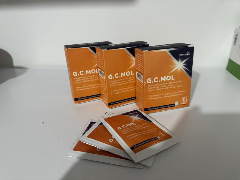 Препарат оказывает отхаркивающее и обезболивающее действие, также снижает повышенную температуру тела. Каждый пакетик саше содержит: Гвайфенезин 0.100 г Витамин С (аскорбиновая кислота) 0.250 г Парацетамол 0.325 г Вспомогательные компоненты: Поводок К25, бикарбонат натрия, Аспартам, диодиум эдетат, Тутти Фрутти порошок. Показания: Простудные (в т.ч. ОРЗ, грипп) и другие инфекционны-воспалительные заболевания, сопровождающиеся повышением температуры тела и кашлем. Способ применения и дозы: Взрослые: принимать по 2 саши 3 раза в сутки. Дети: принимать по 1 саше 3 раза в сутки. Пакетик саши перед приемом растворить в стакане воды. Противопоказания: Повышенная чувствительность к компонентам препарата. Влажный кашель с обильным уходом мокроты, язвенная болезнь желудка или двенадцатиперстной кишки, желудочное кровотечение (в анамнезе). Меры предосторожности: При лечении рекомендуется принимать достаточное количество жидкости. Целесообразно сочетать с поступорным дренажом или вибрационным массажем грудной клетки. Побочные эффекты: Со стороны системы пищеварения: тошнота, рвота, гастралгия, абдоминальные боли, диарея. Со стороны центральной нервной системы: головокружение, головная боль, сонливость. Аллергические реакции: высыпания на коже, крапивянка, гипертермия. Способ хранения: Хранить при температуре не выше 30 градусов.