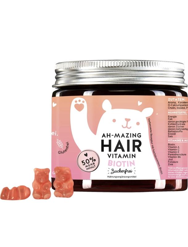 Описание товара Высококачественные ингредиенты: биотин (витамин В7), цинк, фолиевая кислота, кокосовое масло, витамин С и Е Без сахара (подслащенный стевией) Содержит 5000 мкг биотина (витамин B7) на медведя Веганский Витамины для волос без сахара Ah-mazing Hair Vitamins с биотином от Bears with benefits - это высококонцентрированный комплекс витаминов для красоты с 5000 мкг биотина (витамин B7) на мишки, созданный для поддержания нормальных волос, кожи и ногтей. Биотин способствует нормальному энергетическому обмену и поддержанию нормальной кожи, ногтей и волос Витаминный комплекс умной красоты также дополнен витамином B6 и цинком, фолиевой кислотой, витамином С & E и высококачественным кокосовым маслом. Мишки пригодны для длительного потребления и подслащенных стевией.