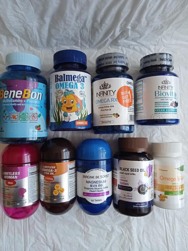 Витамины,омега для женщин,мужчин и деток.В наличии витамины для деток в сиропе и жилейках,омега для деток тоже в жилейках.По другим предметам и косметики цены и количество уточняйте