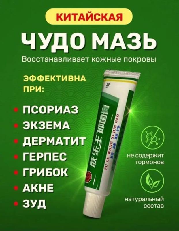 Має місцеву протизапальну дію, а також є природним антисептичним і антибактеріальним засобом. Не містить гормонів. Дійсно діючий і перевірений на знайомих і собі. Від 2 шт - 150 грн. Відправка укр поштою. Застосування можливе у разі псоріаз Діатез нейродерміт экзема дерматит герпес грибкові ураження нігтів і шкіри, кандидозній баланіт свербіж жіночих статевих органів, прыщи, синці фурункули та інших шкірних захворювань, спричинених бактеріальною інфекцією, вірусами, заспокійлива засоби проти укусів комарів. Є протипоказання!! Перед застосуванням рекомендується перевірити на невеликій частині шкіри!! Індивідуальна нестерпність до компонентів!!! (у складі дикі трави). Не застосовувати на відкриті рани та пухирі, усунути потрапляння в ротову порожнину. У разі алергічної реакції відмовитися від застосування та звернутися до лікаря. Склад мазі: Диски китайські (китайські "Чорнильні горішки") — має противірусний і антибактеріальний ефект; Шипи (Колючки) Гледичії китайської — завдяки вмісту в колючках флавоноїдів, фенолам і амінокислотам, зменшує припухлість, виводить токсини та гній; Тифоніум гігантський — трансформує флегу, усуває грудочки та затвердіння Кора 144-листвінниці — має протизапальну й антизубну фармакологічну дію ( виводить сирість зі шкіри, вбиває паразитів і зменшує свербіж); Корінь софори жовтуватої — знижує крихкість капілярів, бореться з вогнищами псоріазу, має антиоксидантні та антисептичні властивості.; Висушені зрілі плоди джгун-корня Мон'є — має протизапальну та протиалергічну дію, знімає набряклість і свербіж тканин, стимулює кровообіг; Висушені зрілі плоди Кахії Венічної — сприятливо впливає на епідерміс, бореться із запаленнями, тонізує м'які тканини. Висушена кора коренів Ясена Мохнатоплідного — позбавляє сильної набряклості, знімає запалення, має загоювальні властивості. Висушена кора Оксамита китайського ( Китайське коркове дерево) — миттєво вбиває всі наявні грибки й бактерії, не даючи хвороби розвиватися й збільшувати площі ураження. Бензилдодецилдиметиламмонія бромід (Бензалконія бромід) — антисептик і дезінфектор; Хлоргексидин ацетат — успішно застосовується як шкірний антисептик і дезінфікувальний засіб уже понад пів століття.