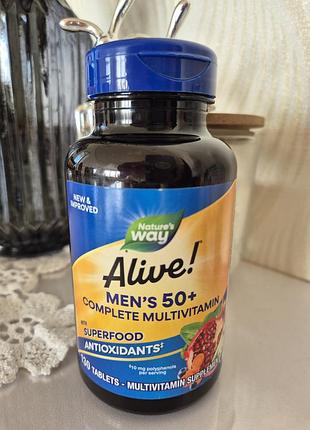 Новые упакованные Alive комплекс мультивитаминов для мужчин 50+. 130шт. Для приема один раз в день Способствует энергетическому обмену и работе мышц. Ежедневная поддержка энергии для мужчин. Alive! Комплекс мультивитаминов для мужчин — это простой способ получить необходимые питательные вещества и энергию, необходимые для активной жизни. Это высокоэффективное средство содержит 100 % или более суточной нормы 19 витаминов и микроэлементов. Кроме того, он содержит высокоэффективные витамины группы В для поддержания ежедневной клеточной энергии. Употреблять до 09.2026р.