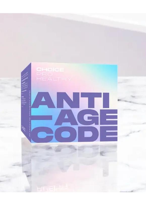 Anti-Age Code – комплекс антиоксидантів та інноваційних активних молекул, що уповільнюють процеси старіння на клітинному рівні, покращують когнітивні функції мозку, збільшують вироблення енергії та повертають м`язову силу. Завдяки передовим технологіям і ретельно підібраним інгредієнтам, продукт є справжнім проривом у сфері антивікової терапії. Anti-Age Code забезпечує підтримку теломерів у генах ДНК, сповільнюючи процес старіння, та активізує вироблення білків сиртуїнів, відомих своїм омолоджувальним ефектом на організм. Активує гени довголіття, сприяє відновленню ДНК та енергетичному метаболізму на рівні клітин і мітохондрій, що допомагає помітно зменшити біологічний вік. ПЕРЕВАГИ: Мінімізація проявів ознак старіння* організму. Новий рівень інтелектуальних можливостей мозку. Поліпшення індексу сну та фізичної активності. Зниження рівня кортизолу. Пригнічення вікового процесу збільшення ваги. Антивікова терапія метаболічних захворювань. ДІЯ: Пригнічує активність біомаркерів старіння на клітинному рівні. Значно збільшує внутрішньоклітинне вироблення енергії. Розширює когнітивні можливості мозку. Забезпечує приплив розумової та фізичної енергії. Збільшує стресостійкість. Покращує якість і глибину сну. Збільшує м`язову силу або зменшує прояви втоми протягом дня. Мінімізує негативний вплив оксидативного стресу і руйнування клітин. Сприяє поділу й росту клітин (диференціація клітин за їхнім природним призначенням). Відновлює порушений кровообіг судин і капілярів. Нормалізує рівень холестерину, значно знижує ризик серцево-судинних захворювань. Уповільнює розвиток пременопаузи і настання менопаузи. Знижує ризики розвитку нейродегенеративних захворювань: хвороби Альцгеймера та вікової деменції. СПОСІБ ВИКОРИСТАННЯ: Спосіб вживання:з 18 років — по 1 капсулі 2 рази на день до їди, запиваючи водою.
