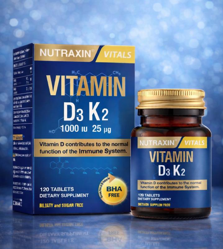 Nutraxin Vitamin D3K2 - це харчова добавка, яка містить вітаміни D3 та K2 у формі спрею, призначена для підтримки здоров'я кісток, зубів, м'язів та імунної системи, а також для регулювання обміну кальцію в організмі. Nutraxin Vitamin D3K2 допомагає: Зміцнити кістки, зуби та м'язи. Регулювати засвоєння кальцію та фосфору. Підтримувати імунну систему. Зберігати здоров'я серцево-судинної системи. Покращити загальний стан організму. Виробник Туреччина .120 таб Nutraxin D3 K2 рекомендується приймати по одній таблетці на день, бажано під час їжі, запиваючи водою.