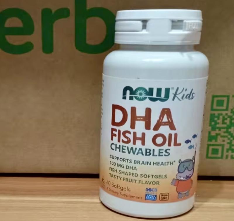 Жувальна дгк для дітей, зі смаком фруктів, омега-3, 60 жувальних таблеток, now kids