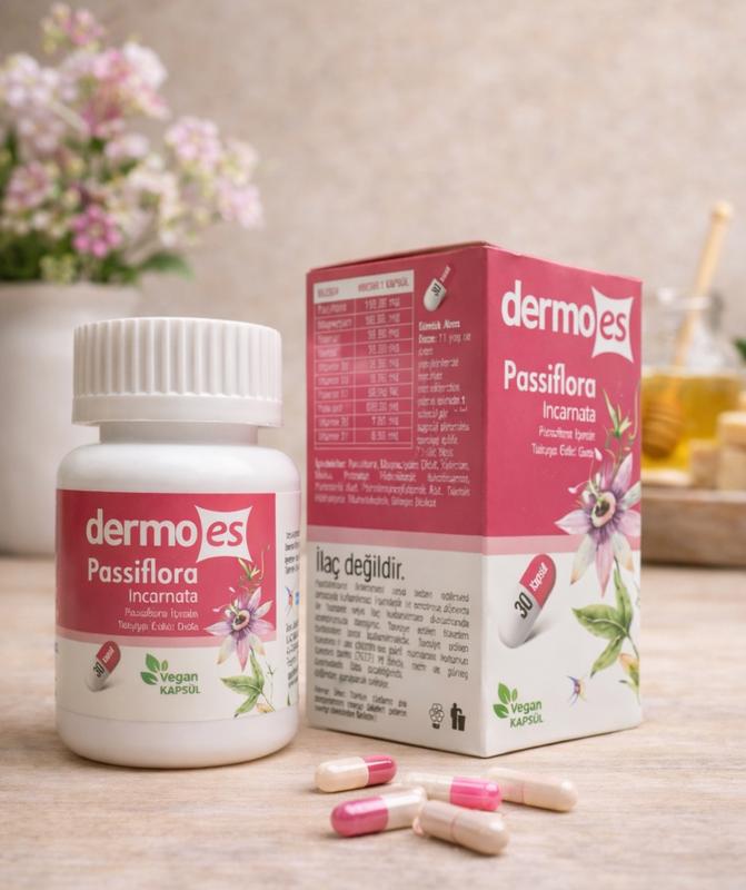 Цей продукт називається Dermoes Passiflora (Пасифлора) і є дієтичною добавкою у формі капсул, що містить екстракт пасифлори інкарнати (Passiflora Incarnata). Він використовується як натуральний засіб для підтримки нервової системи та психічного здоров'я. Основні властивості та застосування: Заспокійливий ефект: Капсули мають заспокійливу дію на нервову систему. Зменшення тривожності: Допомагають знизити симптоми тривоги, занепокоєння та стресу. Покращення сну: Використовуються для лікування безсоння та порушень сну, допомагаючи швидше заснути та покращуючи загальну тривалість сну. Інші переваги: Також можуть сприяти зниженню артеріального тиску, зменшенню головного болю, пов'язаного зі стресом, та підтримці серцево-судинної системи.