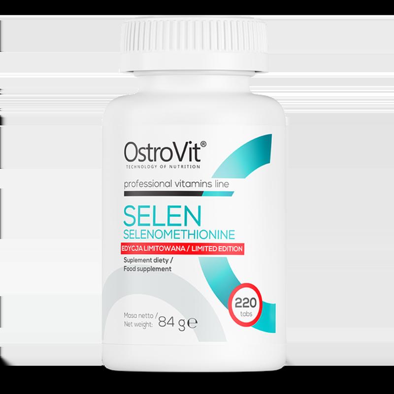 OstroVit Selen - пищевая добавка с лабораторно подтвержденным качеством, на 100% состоящая из селена. Селен оказывает на человеческий организм омолаживающее действие, восстанавливает ногти и волосы, обеспечивает правильное функционирование ферментов. Этот элемент отвечает за нормальную выработку сперматозоидов у мужчин, а у женщин облегчает период менопаузы. OstroVit Selen повышает иммунитет, нейтрализует свободные радикалы, поддерживает работу щитовидной железы, выводит из организма тяжелые металлы и токсины. Препарат укрепляет сердечно-сосудистую систему и усиливает соединительную ткань, таким образом снижая риск травмы при занятиях спортом. Преимущества OstroVit Selen: - общеукрепляющее действие; - благотворно влияет на репродуктивную систему; - омолаживающий эффект; - улучшает состояние ногтей и волос; - укрепляет соединительную ткань; - снимает воспаление кожи; - нормализирует работу щитовидной железы; - выводит токсины; - улучшает настроение; - лабораторно подтвержденное качество; - 220 порций в упаковке. Состав в 1 таблетке OstroVit Selen: - Селен 100 мкг Ингредиенты Наполнитель: микрокристаллическая целлюлоза; крахмал, L-селенометионин (селен), вещества, препятствующие слеживанию: магниевые соли жирных кислот, диоксид кремния. Способ применения: Принимайте по 1 таблетка в день, запивая водой.