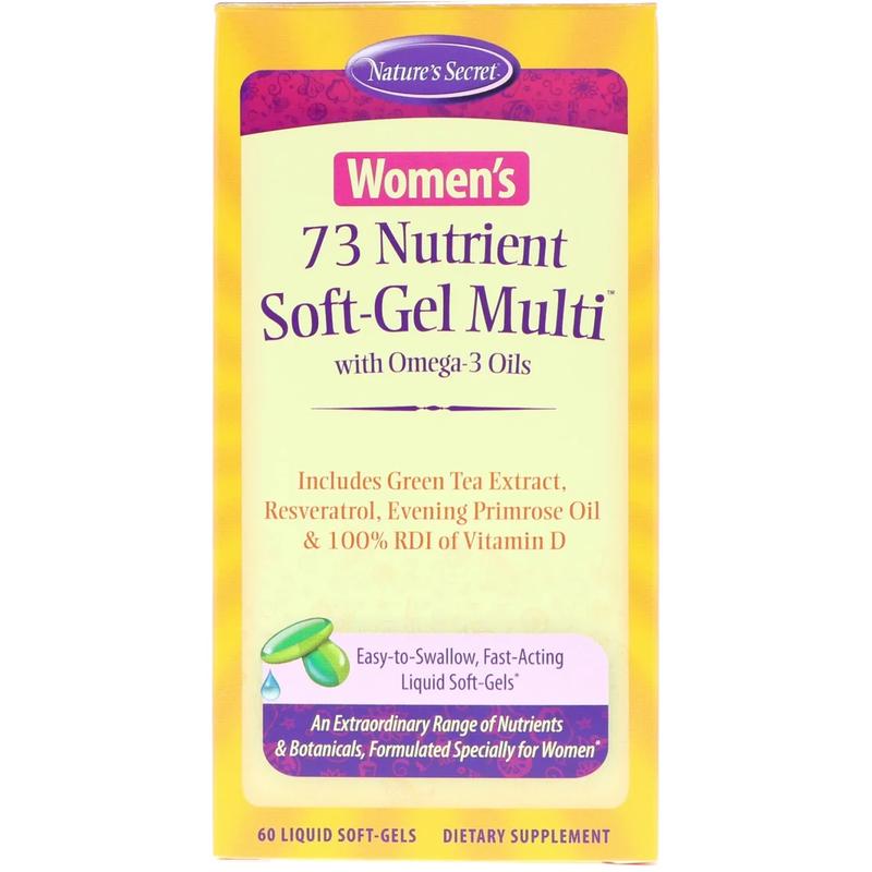 Nature's secret, 73 nutrient soft-gel multi, мультивитамины для женщин с маслами омега-3,...