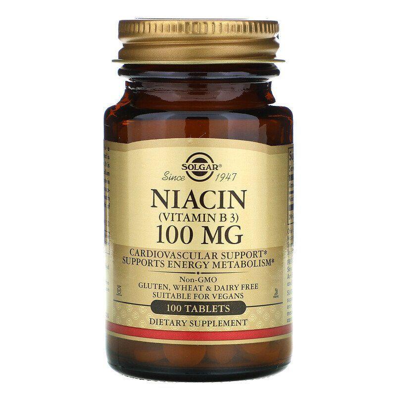 Продукт Niacin (Vitamin B3) от Solgar предлагает витамины в форме, которая способствует продуктивности обмена веществ и поддержке здоровья сердечно- сосудистой системы Порция: 1 таблетка В одной порции % от суточной потребности Ниацин (Витамин В3) 100 мг 625%