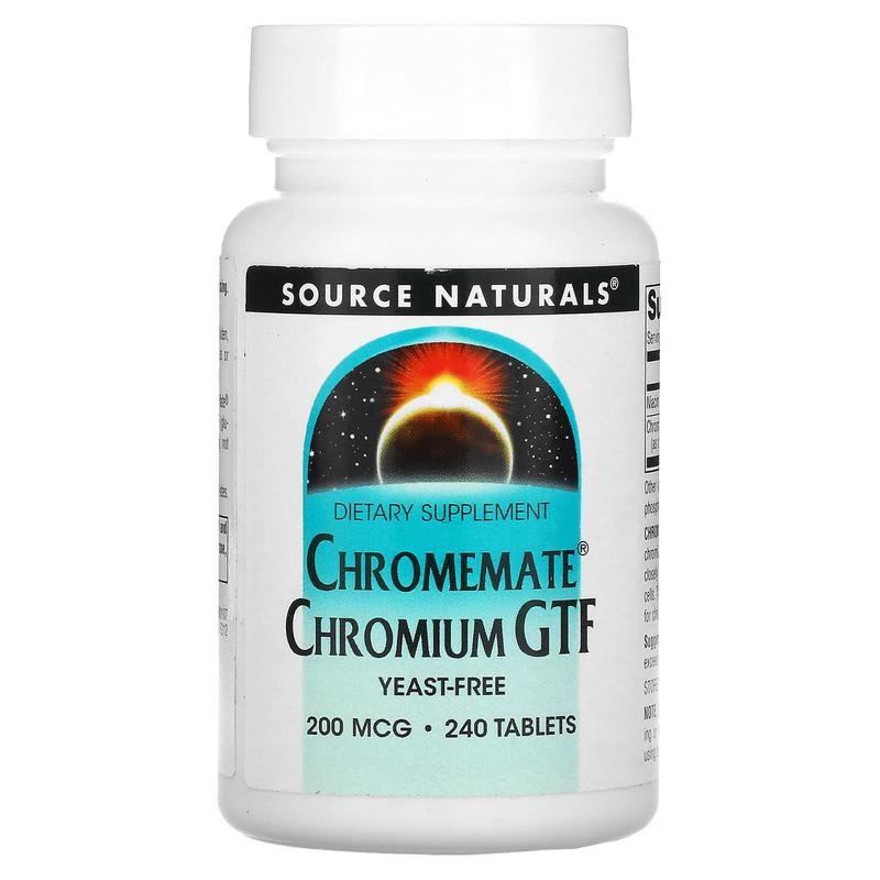 Хром, chromemate chromium gtf, source naturals, 200 мкг, 240 таб.