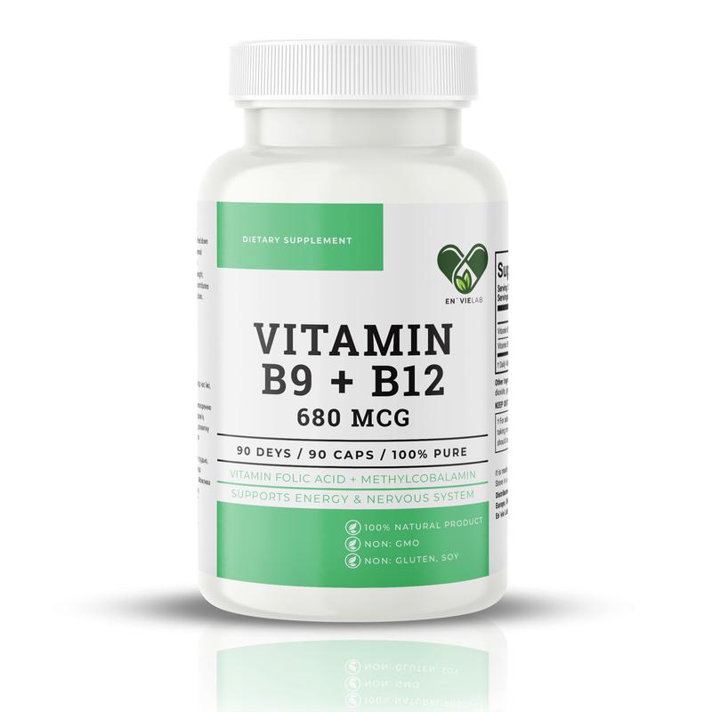 Витамин в9 + в12 (фолат + метилкобаламин) 680 мкг. en`vie lab 90 капсул