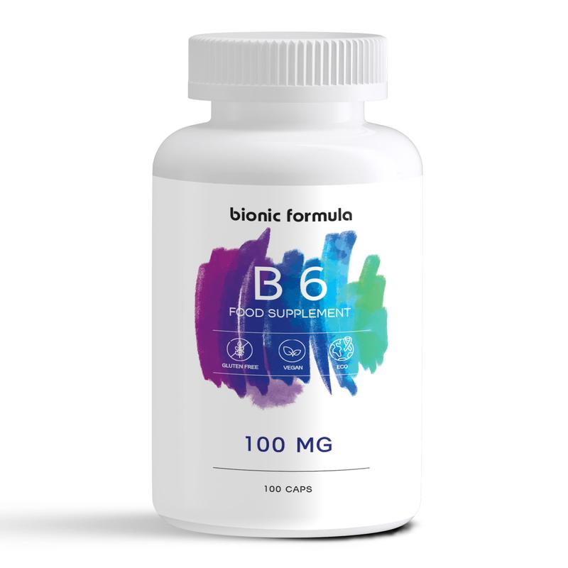Назва товару: Витамин B6 100 мг. Bionic Formula 100 капсул Бренд: Bionic Formula Форма выпуска: капсули Количество порций в упаковке: 100 Состав на порцию: Витамин B6 (пиридоксин HCL) — 100 мг Особенности товара: Витамин B6 является одним из важнейших микроэлементов для поддержания функционирования нервной системы, метаболизма белков, гормонального баланса и укрепления иммунитета. Формула на основе чистого пиридоксина HCL обеспечивает высокую биодоступность и эффективное усвоение организмом. Суточная доза 100 мг создана для людей, которые имеют повышенную потребность в витамине B6 — спортсменов, активных людей, вегетарианцев или лиц в период высокого стресса. Полезные функции: – Способствует нормализации работы нервной системы – Участвует в энергетическом обмене белков и аминокислот – Поддерживает функции мозга и снижает раздражительность – Помогает в регуляции гормонального баланса – Улучшает иммунный ответ организма – Способствует снижению усталости и истощения – Поддерживает сердечно-сосудистую систему Совместимость: Прекрасно сочетается с другими витаминами группы B, магнием, фолиевой кислотой, цинком и L-триптофаном. Может входить в состав комплексных программ для снижения стресса, улучшения сна, укрепления иммунитета или для метаболической поддержки. Способ применения: Принимать по 1 капсуле в день после еды, запивая водой. Не превышать рекомендуемую суточную дозу без консультации врача. Противопоказания: Индивидуальная чувствительность к компонентам. В период беременности и лактации применять только после согласования с врачом. Условия хранения: Хранить в сухом, темном месте при температуре до 25°C, недоступном для детей. Сертификаты качества: Продукция изготовлена в соответствии с международными стандартами НАССР и IS********** Срок годности: 24 месяца с даты производства (замечено на упаковке) Дополнительная информация: Пиридоксин незаменим для синтеза нейромедиаторов, нормализации эмоционального состояния и поддержания мышечного тонуса. Его нехватка может привести к нарушению сна, апатии или судорог, поэтому регулярное поступление этого витамина является критически важным. Bionic Formula — сила в каждой капсуле. Сделай инвестицию в свое здоровье уже сегодня - подтри свой организм качественным источником витамина B6!