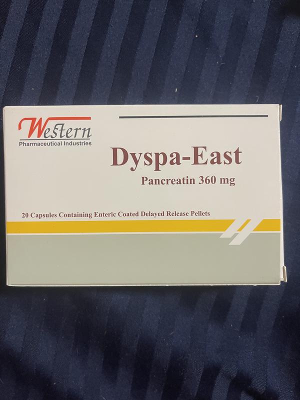 Ціна - 450 грн Упаковка - 20 кап. Торгова назва: Діспа-Іст Dyspa-East Склад: Кожна капсула містить: Панкреатин 300 мг, що еквівалентно: Ліпаза 25, 000 Ph Eur одиниць Амілаза 18, 000 Ph Eur одиниць Протеаза 1000 Ph Eur одиниць. Допоміжні речовини: Повідон k30, Ізопропіловий спирт, HPMC ES, Sprapol L30D55, Діетилфталат, Тальк, Діоксид титану, Очищена вода, Желатин, Діоксид титану, Хіноліновий жовтий, Сансет жовтий, Бриліантовий синій. Властивості: Панкреатин перетравлює вуглеводи, білки та жири. До його складу входять в основному ферменти амілазу, протеазу та ліпазу. Вони перетворюють крохмаль на декстрини та прості цукру, білки – на пептони та олігопептиди, ліпіди – на жирні кислоти та гліцерин, відповідно. Капсули уповільненого вивільнення з ентеральним покриттям забезпечують повну доставку ферментів, що містяться в таблетках, кишечник без змін у шлунку, забезпечуючи тривалий ефект і ретельне травлення. Показання: Для лікування екзокринної недостатності підшлункової залози. Спосіб застосування: Дорослим (у тому числі літнім) та дітям: Одна або дві капсули під час або відразу після кожного прийому їжі. При необхідності збільшення дози слід проводити повільно, уважно спостерігаючи за реакцією та симптоматикою. Під час прийому капсул Dyspa-East слід постійно стежити за адекватною гідратацією пацієнтів. Побічна дія: Можливі: алергічні реакції, діарея чи запор, нудота, дискомфорт у епігастральній ділянці. При тривалому застосуванні у високих дозах може розвинутись гіперурикозурія – підвищення рівня сечової кислоти у плазмі крові. Запобіжні заходи: Вагітність та лактація: -Слід дотримуватись обережності при призначенні препарату вагітним жінкам. -Панкреатичні ферменти можна застосовувати під час грудного вигодовування. Виробник - Єгипет 🇪🇬