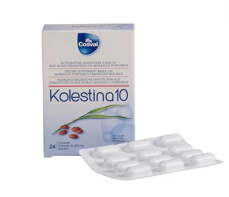 БАД «Колестіна» нормалізує холестериновий обмін в організмі людини , надаючи лікувальну і лікувально-профілактичний вплив на процес ураження артеріальних судин атеросклерозом. вона забезпечує контроль над процесом засвоєння, синтезу, перетворення і виведення холестерину. Активними інгредієнтами є: гуггул 2,5% – джерело гуггулстерони, ізофлавони з генетично модифікований сої, порошок червоного ферментованого рису, інозитол, вітамін Е. Гуггул або миррове (Бальзамова) дерево (Commiphora mukul) – рослина сімейства бурсерових (Burseraceae). Гуггул містить камедь, смолу, яка містить гуггулстерони і ефірної олії мірри. Особливу цінність представляють гуггулстерони. Встановлено, що завдяки гуггулстерони, що містяться в гуггуліпіде, при його регулярному прийомі протягом 12-ти тижнів відбувається зниження тригліцеридів на 23%, загального холестерину на 24%, ліпопротеїнів низької щільності (ЛПНЩ) на 30% і підвищення ліпопротеїнів високої щільності (ЛВП) на 16%. Ці показники практично не поступаються ефективності холестеринзнижувальної препаратів, на відміну від яких гуггуліпід не володіє токсичністю. Крім того, гуггул надає протівовос- палітельное, антисептичну, болезаспокійливу, спазмолітичну, протисудомну, протинабрякову, терпку дію. Він зменшує агрегацію тромбоцитів, перешкоджаючи тромбоутворення, перешкоджає всмоктуванню жирів в кишечнику. Гуггул дуже ефективний у боротьбі з вугрові запаленнями шкіри. Він застосовується при порушенні ліпідного обміну, атеросклерозі, ішемічній хворобі серця, гіпертонії, метаболічному синдромі, ожирінні, цукровому діабеті, синдромі подразненого кишечника, артритах. Гуггул не рекомендується призначати при вагітності , в гостру фазу шкірних захворювань, при гострих ниркових інфекціях, захворюваннях печінки, запальних захворюваннях кишечника, проносах. В 1 капсулі Колестіни (добова доза) міститься 10 мг вітаміну е, що на 100% покриває щоденну потребу в цьому вітаміні.