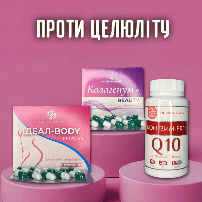 ИДЕАЛ-BODY universal - уменьшает проявления целлюлита и объем подкожного жира. Способствует похудению и контролю веса. Уменьшает аппетит, повышает эластичность и упругость кожи КОЛЛАГЕНУМ Beauty - Белок который используется во всех типах сопряженных тканей, связках, сухожилий, мышечных волокнах, коже. Необходим для укрепления костной ткани КОЕНЗИМ PRO - для замедления процессов преждевременного старения и для омоложения организма на клеточном уровне. Улучшает эластичность и общее состояние кожи Программа рассчитана на 1 месяц Для достижения желаемого результата принимать 3 месяца