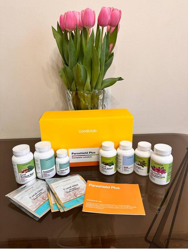 Для заказа писать в личные сообщения. Отправка новой почтой, наложенным платежом без предоплаты, доставка бесплатна. Парашилд Плюс - это набор для интенсивной защиты от паразитов с длительностью приема 2 месяца. Комплексное действие растительных экстрактов, ферментов, пробиотиков, витаминов и минералов способствует: интенсивной очистки от различных внутренних паразитов; нормализации работы пищеварительной системы; восстановлению здоровой микрофлоры кишечника; укреплению иммунитета. 1) ПАРАФАЙТ – противопаразитарная синергическая комбинация экстрактов 12 растений, среди которых черный орех, гвоздика, ромашка, тирлич, древесный, материнка, тибрец, чеснок, перец. Их активные компоненты – юглон, дубильные вещества, органические кислоты, флавоноиды, горькие гликозиды, эфирные масла, алицин и пиперин – препятствуют жизнедеятельности паразитов на различных стадиях развития и помогают вывести их из организма. 2) КОРАЛ ЧЕРНЫЙ ОРЕХ – источник юглона, эфирных масел и дубильных веществ. Такой комплекс активных компонентов помогает бороться с внутренними паразитами и нормализует работу ЖКТ. 3) КОРАЛ БУРДОК РУТ - Богатый инулин - красивый сорбент и пребиотик, органические кислоты, дубильные вещества, которые ускоряют детоксикацию организма и препятствуют росту патогенных бактерий и грибов. 4) АСИМИЛЯТОР – комплекс пищеварительных ферментов. Способствует качественному расщеплению пищи (белков, жиров, углеводов) и нормализации пищеварения. Помогает в нейтрализации и выведении токсинов из организма. 5) КОРА МУРАШИНОГО ДЕРЕВА ИЗ СЕЛЕНОМ содержит ценные вещества нефтехиноны (лапахол, бета-лапахол), которые препятствуют жизнедеятельности патогенных микроорганизмов и активируют иммунную систему организма. Селен и витамин С обеспечивают антиоксидантную защиту и положительно влияют на иммунитет. 6) МСМ - содержит биодоступную органическую серу, витамин С и биотин, которые помогают выводить из организма токсичные вещества, уменьшают аллергические проявления, улучшают состояние кожи, волос и ногтей. 7) СУПЕР-ФЛОРА – способствует увеличению количества собственных полезных бактерий в кишечнике, улучшению пищеварения и укреплению иммунитета. 8) КОРАЛ-МАЙН — Источник полезных макро- и микроэлементов (кальция, магния, калия и др.).