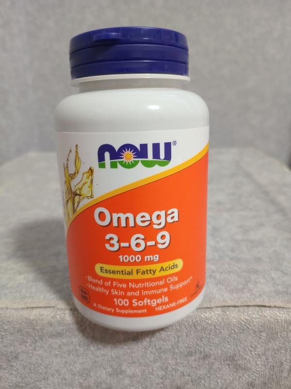 Смесь из пяти питательных масел Поддержание здоровой кожи и иммунитета Без ГМО Диетическая добавка Без гексана Кошерный продукт Содержит желатин Питательные масла Семейное предприятие, основанное в 1968 году Изготовлено на предприятии, имеющем регистрацию GMP Содержит ингредиенты из крупного рогатого скота Омега-3, 6 и 9 - это смесь масел из семян льна, примулы вечерней, рапса, черной смородины и семян тыквы. Добавка от NOW сочетает эти хорошо известные питательные масла для создания сбалансированных пропорций жирных кислот омега-3, омега-6 и омега-9. Омега-3 (альфа-линоленовая кислота, АЛК) и омега-6 (ГЛК) играют важную роль в поддержании здоровья кожи и работы иммунной системы. Пищевая олеиновая кислота - мононенасыщенная омега-9 жирная кислота - способствует здоровой работе сердечно-сосудистой системы. Каждая порция также может содержать такие природные количества полиненасыщенных и мононенасыщенных жиров: омега-3 [альфа-линоленовая кислота (АЛК)]: 45 %; омега-6 [линоленовая кислота и гамма-линоленовая кислота (ГЛК)]: 26,5 %; омега-9 [олеиновая кислота]: 17,5 %; другие соединения (короткоцецепочечные жирные кислоты, насыщенные жиры, фосфолипиды и т.д.): 11 %.