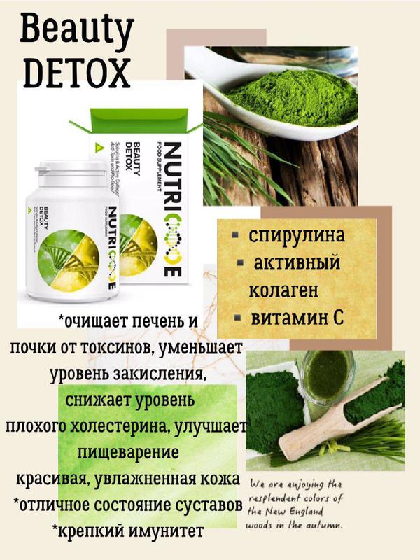 💚 Beauty Detox 💚 Основним компонентом Detox є СПІРУЛІНА ‼️ОТЖЕ, що ж такого є в Спіруліні (Spirulinaplatensis), чого не має в жодній іншій рослині і за що її тепер цінують в усьому світі? ☑️Spirulinaplatensis – це: ЧУДО-ЇЖА: в спіруліні міститься до 50-70% білку, а в ньому, відповідно і всі важливі незамінні для нашого організму амінокислоти. Цей білок є дуже поживним, тому спіруліну вживають альпіністи, військові, космонавти, спортсмени (є практика вживання спіруліни перед важливими змаганнями, наприклад, перед Олімпійськими іграми). ❌❌❌❌❌❌❌❌❌❌❌❌❌ 3 СУПЕРПІГМЕНТИ: 1️⃣фікоцианін + 2️⃣хлорофіл А + 3️⃣бета-каротин 1️⃣Фікоцианін /синій пігмент/- дуже рідкісний у природі пігмент, а у спіруліні його аж 1,5%. Цінність його у протипухлинній дії /зупиняє ріст пухлини/; імуномодуляторній дії /підвищує імунітет/, у відновленні енергетичного обміну в клітинах; у кровотворній дії /через стимуляцію стовбурових клітин кісткового мозку/ - за відкриття цього механізму китайські вчені отримали патент. 2️⃣Хлорофіл А /зелений пігмент/ -дуже схожий за будовою до гему крові (червоний пігмент гемоглобіну). Його в 3-5 разів більше ніж у відомого «хлорофільного лідера» – люцерни. Що робить хлорофіл А? Виводить важкі метали та радіоактивні речовини, а це дуже важливо для мешканців екологічно забруднених регіонів, шахтарів, металургів, а також тих, у кого є проблеми з нирками чи печінкою, де, як відомо, і осідають ці важкі метали. 3️⃣Бета-каротин - /жовто-оранжевий пігмент/ -відновлює епітелій, шкіру, слизові, прискорює ріст волосся та нігтів. У спіруліні його у 10 разів більше, ніж у відомого рекордсмена – моркві. МОЛОДІСТЬ “ON”:вмикає синтез колагену завдяки синергійній дії БІЛКІВ та ПІГМЕНТІВ. А як відомо колаген нам потрібний для загоєння ран та зростання переломів, для пружності шкіри, для роботи суглобів. Одним словом, для молодості. 💚💚💚💚💚ВІТАМІННО-МІНЕРАЛЬНА БОМБА:Спіруліна вважається джерелом цінних для нашого організму вітамінів та мінералів / в ній аж 2000 вітамінів, амінокислот, мінералів/ В ній немає лише вітамінів С та D. Але СПІРУЛІНА: 🎯 містить більше вітаміну В12, ніж пророщена пшениця. 🎯 найбагатше з відомих джерело вітамінів А, Е, F 🎯 містить в 5 разів більше заліза, ніж пивні дріжджі 🎯 містить особливу ϒ-лінолеву кислоту, яка є тільки в материнському молоці. 🎯 є дуже багато кальцію та фосфору + велика кількість ОМЕГА -3. ‼️‼️‼️‼️‼️То що ж таке СПІРУЛІНА? ☑️СПІРУЛІНА – це: 💚 антиканцероген, антиоксидант, який сповільнює ріст ракових клітин та захищає від їх появи /доведено японським вченими із інституту в Тояме. 💚 детоксикант – виводить важкі метали, перешкоджає їх накопиченню у нирках та печінці. 💚 нормальне травлення – вирівнює кислотно-лужну рівновагу у шлунку; усуває дисбактеріоз /інститутом Меріленд доведено, що спіруліна на 327% підвищує кількість корисних лактобактерій/. 💚 омолодження із середини, особливо для людей похилого віку. 💚 ліфтинг шкіри та підвищення її тонусу за рахунок синтезу колагену та інших «скелетних речовин» шкіри. 💚 покращення роботи підшлункової залозипри цукровому діабеті 💚 корисне схуднення 💚 висока продуктивність праці 💚 підвищення лактації /у годуючи матерів/ 💚 внутрішня гармонія за рахунок нормалізації роботи нервової системи 💚 міцний імунітет 💚 гарна шкіра, волосся, нігті 💚 швидке відновлення організму п