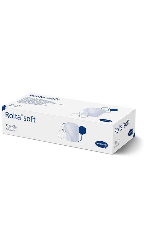 Магазин PerfectStore предлагает: Rolta® soft / Ролта софт - синтетический ватный подкладной бинт из полиэфирных волокон. Его можно использовать там, где требуется эффект подушечки (мягкой подложки), например при компрессионной терапии или при иммобилизации жесткими материалами, такими как шины или гипсовые повязки, на длительный срок на невредимой коже человека. Мягкий и приятный для кожи. Проницаемый для воздуха и пота, помогает компенсировать разность температур. Прост в использовании, можно оторвать вручную. Вы можете стерилизовать (автоклавировать при 121 °C). Способен пропускать рентгеновские лучи. Состав: 100% полиэстер. Форма выпуска: размер бинта 15см х 3м, в упаковке 4 нестерильных бинты.