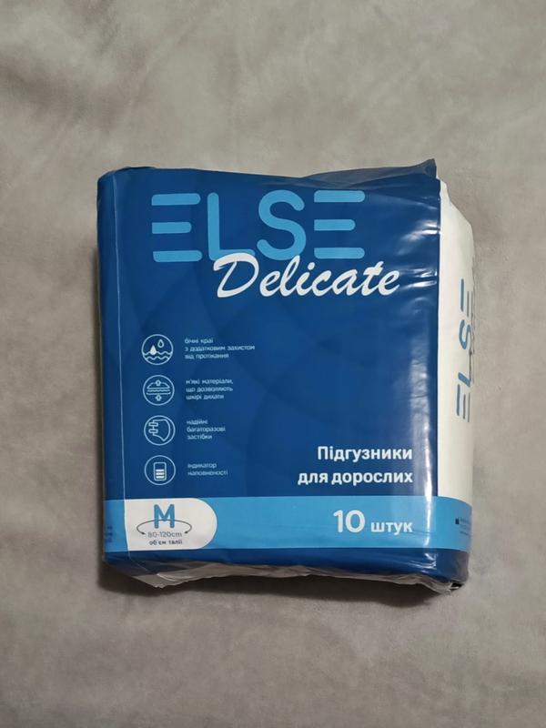 Підгузники для дорослих преміум-класу ELSE – ефективне рішення для людей з проблемою нетримання сечі середнього та тяжкого ступеня. Завдяки «дихаючій» структурі, підгузники ELSE дозволяють шкірі дихати, запобігаючи утворенню пролежнів і подразнень, особливо під час тривалого використання. Переваги: *Максимальна поглинаюча здатність: швидке поглинання та надійне утримання до 1500 мл рідини і комфорт до 16 годин. *Антибактеріальний захист: Підгузники виготовлені з використанням антибактеріальної основи, яка запобігає подразненню шкіри та появі інфекцій. *Дихаючі гіпоалергенні матеріали. *Індикатор вологонасичення. *Зручні багаторазові застібки-липучки. *Анатомічний крій та захисні бар’єри. ------ Розмір M Вага виробу: 100 г Обхват живота: 80 – 120 см Кількість в упаковці: 10 шт Поглинаюча здатність: до 1500 мл Стать: Унісекс. Виробництво: Україна.