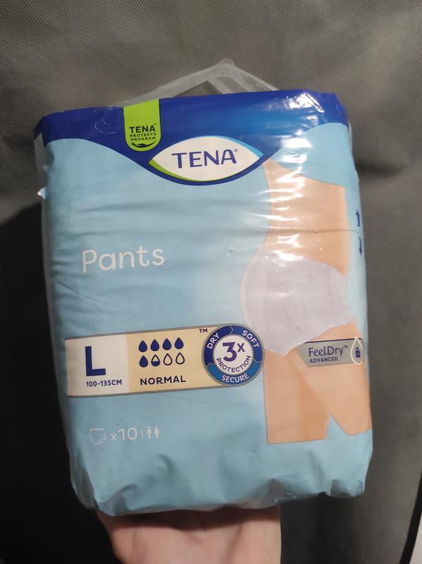 Продам подгузники-трусы (подгузники, памперсы, подгузники-трусья, памперсы для вросших) TENA Pants Normal в размере L (100-135см), 10 штук в упаковке. Имеют вид обычного белья. Используются при средней и тяжелой степени недержания. Подходят для женщин и мужчин, ведущих активный образ жизни, гораздо удобнее чем обычные подгузники.