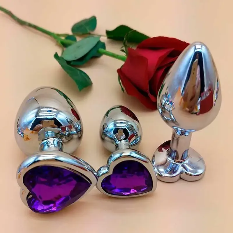 Набор трех металлических анальных пробок с сердечками разного размера с цветными кристаллами. Размер и вес: - маленькая (S) диаметр – 2,8 см. (окружность – 8,48 см.), высота – 7,2 см, вес: 50 грамм; - средняя (M) диаметр – 3,4 см. (окружность – 10,68 см.), высота – 8,3 см., вес: 90 грамм; - большая (L) диаметр – 4,2 см. (окружность – 13,19 см.), высота – 9,0 см, вес: 160 грамм. Материал: металл, стекло.