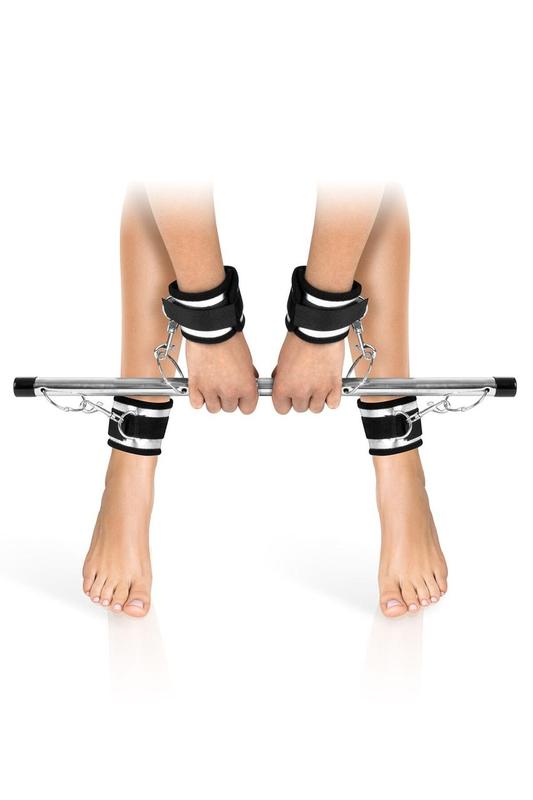 Основа хорошей БДСМ-сессии -- это, во-первых, доверие, а, во-вторых, качественная и надежная фиксация, поэтому предлагаем купить фиксатор для рук и ног Fetish Tentation Submission bar with 4 cuffs, состоящий из 4 наручников (для рук и ног) и металлической перекладины с кольцами для крепления. Вы можете закрепить руки и ноги прямо или крест-накрест, в зависимости от того, насколько комфортной должна быть поза. Наручники на липучках, так что подойдут на любой обхват запястий и лодыжек. Заставьте своего партнера или партнершу принять супер соблазнительную и очень неудобную позу, которая ограничивает движения, но при этом открывает перед вами множество сценариев! Мучения, ласки, проникновения -- все это легко доступно, когда партнерша стоит, полностью наклонившись вперед в фиксаторе Fetish Tentation Submission bar with 4 cuffs. Наручники оснащены карабинами для крепления -- их можно крепить как к данной перекладине, так и использовать для других игр с фиксацией. Наслаждайтесь самыми яркими БДСМ-приключениями с фиксатором Fetish Tentation Submission bar with 4 cuffs!