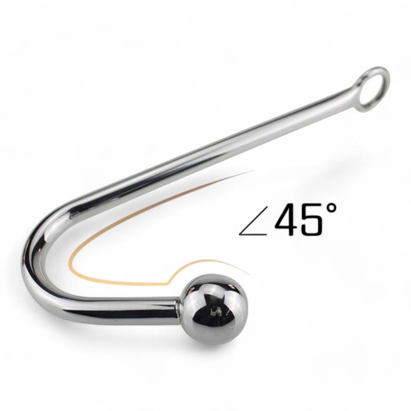 Анальный крюк из метала с шариком на конце и кольцом под веревку, анальная игрушка