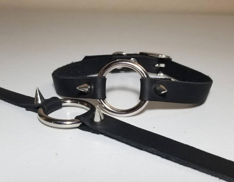 Чокер с кольцом и шипами из плотной натуральной кожи (все размеры)