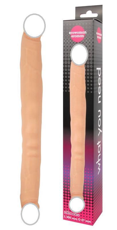 Любите яркий и разнообразный секс? Двойной фаллоимитатор - то, что вам нужно! Интимный аксессуар создан специально для тех, кто предпочитает реалистичные «игрушки». Ярко выраженные головки, четко «прорисованные» объемные венки, естественный оттенок делают изделие максимально похожим на настоящий пенис. Эргономичная форма фаллоимитатора способствует его легкому введению и извлечению. «Секс-игрушка» может быть использована как соло, так и в парной любовной игре. Прекрасно подходит для всех видов интимной близости. Эротический аксессуар изготовлен из безопасного, приятного на ощупь материала. Прост в использовании и уходе. Рекомендуется использовать изделие совместно с лубрикантом для «секс-игрушек» SEXTOYS из серии SEX EXPERT и очищающий спрей с антимикробным эффектом CLEARTOY для экспресс-обработки. Дополнительная информация Артикул (SKU): EE-10220 Упаковка: Коробка Бренд: "Erowoman/Eroman" игрушки Цвет: Телесный Общая длина (мм): 300 Диаметр изделия, мм: 27 Материал изделия: Силикон Назначение изделия: двусторонний Фаллоимитатор