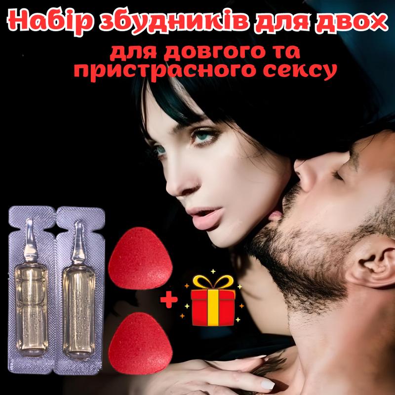 Плюс приятный ПОДАРОК 2 мощные таблетки для мужской силы на пробу. В набор входят: * 2 женские ампулы; * 2 мужские таблетки. Для женщины Мощный женский возбудитель в каплях откроет новый мир наслаждения! Безопасный женский возбудитель, без вкуса, без запаха - создан, чтобы подарить вам незабываемые моменты страсти. При этом, препарат совершенно незаметный в напитке. Женские капли для оргазма - маленький секрет вашего удовольствия. Для тех, кто ищет новые грани чувств и интенсивные ощущения во время интимных моментов. Женский усилитель оргазма активирует чувственность, придавая вашему опыту новое измерение. Натуральный женский возбудитель создана на основе натуральных экстрактов и совершенно безопасный для здоровья. Женская виагра подойдет любой девушке старше 18 лет. Преобразите вашу близость в нечто невероятное - наши капли вызывают возбуждение, усиливая каждое прикосновение, делая каждый момент более ярким. И самое главное - они безопасны и дарят чистое удовольствие. Для мужчины Вы ищете способ укрепить свою потенцию, продлить половой акт и доставить незабываемое удовольствие своей партнерше? Мы представляем вам мощный мужской возбудитель в таблетках - ваш надежный партнер для ярких сексуальных впечатлений. Одним из ключевых преимуществ наших таблеток является их быстрый эффект. Мужской пролонгатор действует молниеносно, позволяя вам насладиться сексуальным опытом в полной мере. Таблетки для эрекции не только продлевают половой акт, но и усиливает вашу потенцию. Он создан специально для мужчин, которые хотят дарить удовольствие своим партнершам Виагра разработана с учетом безопасности и комфорта пользователя. Она не вызывает привыкания и может быть использована в любое удобное для вас время. Таблетки для повышения потенции - это ваш ключ к уверенности, мощности и настоящему удовольствию в сексе. Попробуйте его сегодня и откройте новые горизонты в вашей сексуальной жизни. Крепкий стояк и задержка эякуляции гарантированы! Инструкция для мужских таблеток: принимать не более одной таблетки в сутки за 10-15 минут до полового акта. Совместимы с алкоголем в небольших количествах. Максимальная дозировка - 1 таблетка в сутки. Эффект проявляется при наличии сексуальной стимуляции. С алкоголем совместимы. Инструкция для женских ампул: одна ампула - одна доза. Добавлять в любую жидкость, кроме кипятка, объемом от 50 до 200 грамм. Максимальная дозировка в сутки - 2 ампулы. С алкоголем совместимы. *Доставка по всей Украине; *Предоплата не требуется; *Заказ можно оформить через *****/********/******** *Помощь в подборе препаратов; *Широкий ассортимент мужских и женских возбудителей; *Полная анонимность 100%.