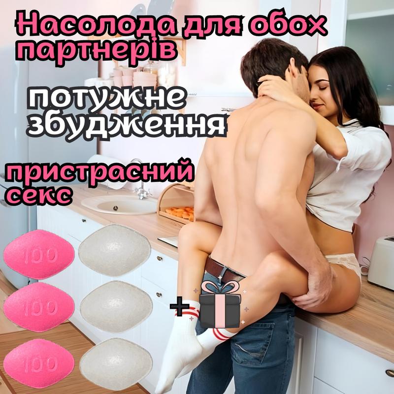 Плюс приятный ПОДАРОК: МУЖСКОЙ или ЖЕНСКИЙ возбудитель на пробу. Уточняйте во время оформления заказа, какой подарок предпочтительнее. Обратите внимание! В набор входит: 3 мужских таблетки (пролонгатор и укрепляют потенцию); 3 женские таблетки (вызывают желание секса и усиливают ощущения в процессе). Женский препарат Ощутите полную гамму наслаждений с женскими таблетками для оргазма, разработанными как мощный женский возбудитель в таблетках, способный привнести в интимную жизнь новые яркие ощущения. Натуральные женские возбудители созданы для безопасного и эффективного усиления оргазма, не вызывая привыкания. Откройте для себя средство, которое станет надежным женским усилителем оргазма, обеспечивая максимальное удовольствие без риска для здоровья. Доверьтесь женской виагре, чтобы испытать потрясающие моменты страсти и удовольствия, не беспокоясь о побочных эффектах. Мужской препарат Хотите уверенности в своих силах и максимального удовольствия в постели? Мужская "Виагра" - это проверенное временем средство для улучшения эрекции и повышения потенции. Эффективный мощный мужской возбудитель поможет достичь максимальной сексуальной активности и наслаждения. Безопасный мужской возбудитель не только эффективен, но и безвреден для вашего здоровья. Мужской пролонгатор позволит контролировать процесс, обеспечивая крепкий стояк и задержку эякуляции. Таблетки для эрекции обеспечивают стойкую эрекцию и долгое наслаждение интимной близостью. Попробуйте наши таблетки для долгого секса и ощутите невероятные ощущения от продолжительного интимного акта. Инструкция для женских таблеток: принимать за 20-30 минут до полового акта. С алкоголем совместимы. Максимальная дозировка - 1 таблетка в сутки. Инструкция для мужских таблеток: принимать не более одной таблетки в сутки за 10-15 минут до полового акта. Совместимы с алкоголем в небольших количествах. Максимальная дозировка - 1 таблетка в сутки. Эффект проявляется при наличии сексуальной стимуляции. С алкоголем совместимы. *Доставка по всей Украине; *Предоплата не требуется; *Заказ можно оформить через *****/********/******** *Помощь в подборе препаратов; *Широкий ассортимент мужских и женских возбудителей; *Полная анонимность 100%.
