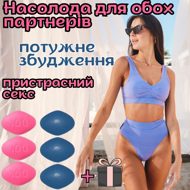 Плюс приємний ПОДАРУНОК: ЧОЛОВІЧИЙ або ЖІНОЧИЙ збудник на пробу. Уточнюйте під час оформлення замовлення, який подарунок є кращим. Зверніть увагу! У набір входить: 3 чоловічі таблетки (пролонгатор і зміцнюють потенцію); 3 жіночі таблетки (викликають бажання сексу та посилюють відчуття в процесі). Жіночий препарат Відчуйте міць сили вашого бажання з пігулками - потужний жіночий збудник, який привнесе в інтимне життя нові яскраві відчуття. Насолоджуйтесь моментами пристрасті та задоволення з жіночими пігулками для оргазму, розробленими для досягнення максимального задоволення. Ці таблетки - натуральний жіночий збудник, безпечний для здоров'я та без звикання. Відкрийте собі жіночий підсилювач оргазму, який перетворить сексуальне життя і надасть їй новий, яскравий відтінок. Відчуйте себе впевнено та повноцінно з жіночою віагрою, яка допоможе досягти неймовірних відчуттів та насолод. Чоловічий препарат Відкрийте нові горизонти інтимного життя із потужним чоловічим збудником у таблетках. Ефективні та безпечні, ці чоловічі таблетки для оргазму розроблені для того, щоб допомогти досягти максимального задоволення без ризику звикання. Насолоджуйтесь природною силою з натуральним чоловічим збудником, який забезпечує стійке та якісне збудження. Чоловічий підсилювач оргазму допоможе зазнати неперевершених відчуттів під час близькості. І для тих, хто шукає надійне рішення для підвищення своєї сексуальної активності - чоловіча віагра - ваш вірний шлях до інтенсивних та насичених моментів із партнером. Інструкція для жіночих пігулок: приймати за 20-30 хвилин до статевого акту. З алкоголем сумісні. Максимальне дозування - 1 таблетка на добу. Інструкція для чоловічих пігулок: приймати не більше однієї таблетки на добу за 10-15 хвилин до статевого акту. Сумісні з алкоголем у невеликих кількостях. Максимальне дозування - 1 таблетка на добу. Ефект проявляється за наявності сексуальної стимуляції. З алкоголем сумісні. *Доставка по всій Україні; * Не потрібно платити наперед; * Допомога у підборі ліків; *Широкий асортимент чоловічих і жіночих збудників; * Повна анонімність 100%; * Заказ можна оформити через *****/********/********