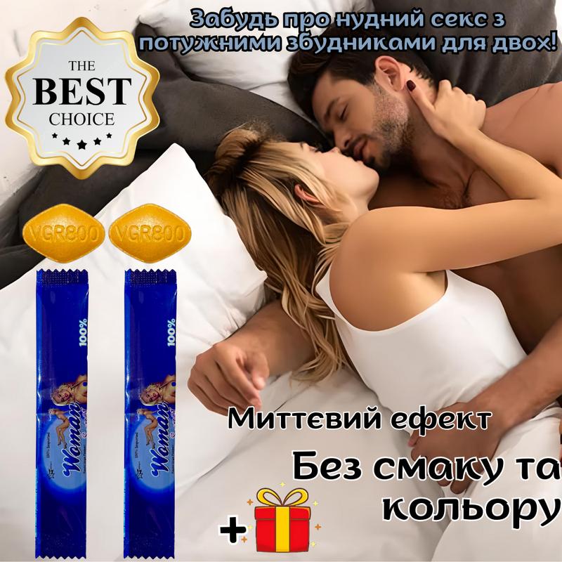 Лучшие возбудители для двоих Оригинал «*****» Для мощного возбуждения и долгого секса Обратите внимание! В набор входит 2 мужские таблетки (пролонгатор и укрепляют потенцию) и 2 женских стика (вызывают желание секса и усиливают ощущения в процессе) Плюс приятный ПОДАРОК: МУЖСКОЙ или ЖЕНСКИЙ возбудитель на пробу. Уточняйте во время оформления заказа, какой подарок предпочтительнее. **Мощный мужской возбудитель в таблетках. Поддержка сексуальной активности и выносливости.** В современном мире мужчины сталкиваются с различными факторами, которые могут негативно сказываться на их сексуальной функции и выносливости. Мощный мужской возбудитель в таблетках разработан для того, чтобы помочь улучшить качество и продолжительность интимной жизни. Каждая таблетка содержит уникальную комбинацию натуральных ингредиентов, которые способствуют улучшению кровообращения в области половых органов, повышению уровня тестостерона и увеличению сексуальной выносливости. Это позволяет мужчинам чувствовать себя более уверенно и активно в постели. Мощный мужской возбудитель в таблетках безопасен для здоровья и не вызывает привыкания. Он разработан с использованием высококачественных ингредиентов и соответствует всем стандартам безопасности. **Мощный женский возбудитель в каплях. Поддержка женской сексуальности и удовольствия.** Для женщин также важно чувствовать себя уверенно и наслаждаться интимными моментами с партнером. Мощный женский возбудитель в каплях создан для того, чтобы помочь усилить женскую сексуальность и увеличить удовольствие от секса. Каждая капля содержит уникальную формулу, которая стимулирует кровообращение в области половых органов, повышает чувствительность и усиливает ощущения во время интимных контактов. Это делает сексуальный опыт для женщин более ярким и приятным. Мощный женский возбудитель в каплях безопасен для здоровья и не вызывает нежелательных побочных эффектов. Он разработан с использованием только высококачественных ингредиентов, которые помогают женщинам чувствовать себя более уверенно и сексуально. Инструкция для женских стиков: одна ампула - одна доза. Добавлять в любую жидкость, кроме кипятка, объемом от 50 до 200 грамм. Максимальная дозировка в сутки - 2 ампулы. С алкоголем совместимы. Инструкция для мужских таблеток: принимать не более одной таблетки в сутки за 10-15 минут до полового акта. Совместимы с алкоголем в небольших количествах. Максимальная дозировка - 1 таблетка в сутки. Эффект проявляется при наличии сексуальной стимуляции. С алкоголем совместимы. *Доставка по всей Украине; *Предоплата не требуется; *Заказ можно оформить через *****/********/******** *Помощь в подборе препаратов; *Широкий ассортимент мужских и женских возбудителей; *Полная анонимность 100%.