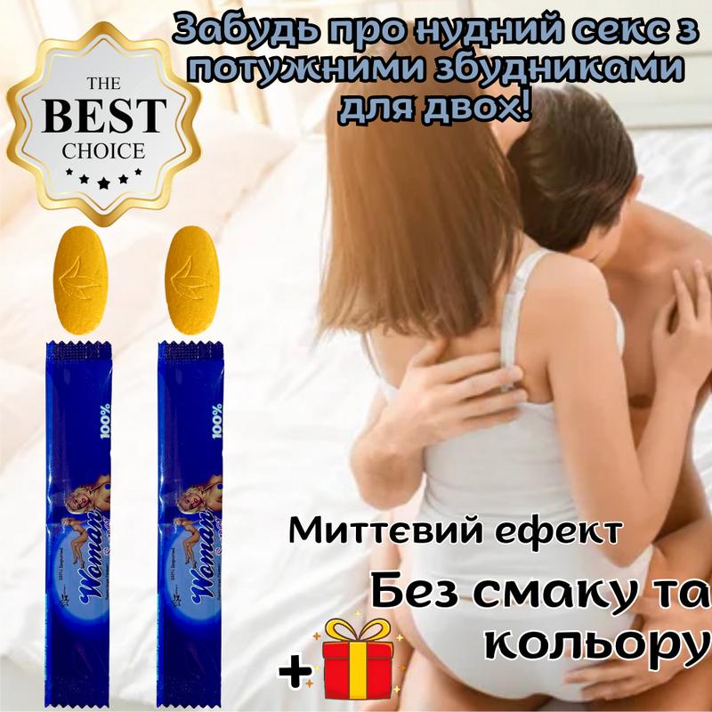Возбудитель мужской + Возбудитель женский Оригинал «*******» Для незабываемых ночей Обратите внимание! В набор входит 2 мужские таблетки (пролонгатор и укрепляют потенцию) и 2 женских стика (вызывают желание секса и усиливают ощущения в процессе) Плюс приятный ПОДАРОК: МУЖСКОЙ или ЖЕНСКИЙ возбудитель на пробу. Уточняйте во время оформления заказа, какой подарок предпочтительнее. **Естественный сексуальный активатор для мужчин. Поддержка сексуальной функции и энергии.** Современный образ жизни часто ставит перед мужчинами различные вызовы, включая стресс, усталость и недостаток времени. Это может отразиться на их сексуальной функции и желании. Естественный сексуальный активатор для мужчин создан для того, чтобы помочь поддерживать здоровую сексуальную функцию и повышать энергию. Специально разработанная формула активатора содержит только натуральные компоненты, которые способствуют улучшению кровообращения в области половых органов и увеличению уровня тестостерона. Это помогает повысить сексуальное влечение и эрекцию, делая сексуальные контакты более приятными и насыщенными. Естественный сексуальный активатор для мужчин безопасен для здоровья и не вызывает побочных эффектов. Он создан на основе природных ингредиентов, которые способствуют общему улучшению самочувствия и стимулируют сексуальную энергию. **Естественный сексуальный активатор для женщин. Поддержка женской сексуальности и возбуждения.** Для женщин также важно чувствовать себя желанными и уверенными в своей сексуальности. Естественный сексуальный активатор для женщин разработан для того, чтобы помочь поддерживать здоровую сексуальную функцию и стимулировать возбуждение. Специальная формула активатора содержит только натуральные ингредиенты, которые улучшают кровообращение в области половых органов и повышают чувствительность. Это помогает увеличить желание и возбуждение, делая интимные моменты более приятными и интенсивными. Естественный сексуальный активатор для женщин безопасен для здоровья и не вызывает побочных эффектов. Он создан на основе природных компонентов, которые способствуют общему улучшению самочувствия и стимулируют женскую сексуальную активность. Инструкция для женских стиков: одна ампула - одна доза. Добавлять в любую жидкость, кроме кипятка, объемом от 50 до 200 грамм. Максимальная дозировка в сутки - 2 ампулы. С алкоголем совместимы. Инструкция для мужских таблеток: принимать не более одной таблетки в сутки за 10-15 минут до полового акта. Совместимы с алкоголем в небольших количествах. Максимальная дозировка - 1 таблетка в сутки. Эффект проявляется при наличии сексуальной стимуляции. С алкоголем совместимы. *Доставка по всей Украине; *Предоплата не требуется; *Заказ можно оформить через *****/********/******** *Помощь в подборе препаратов; *Широкий ассортимент мужских и женских возбудителей; *Полная анонимность 100%.