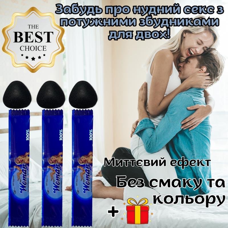 Возбудители для двоих Виагра Оригинал «********» Для мощных оргазмов и долгого секса Обратите внимание! В набор входит 3 мужские таблетки (пролонгатор и укрепляют потенцию) и 3 женских стика (вызывают желание секса и усиливают ощущения в процессе) Плюс приятный ПОДАРОК: МУЖСКОЙ или ЖЕНСКИЙ возбудитель на пробу. Уточняйте во время оформления заказа, какой подарок предпочтительнее. **Мужской Возбудитель:** Хотите придать вашей сексуальной жизни новый импульс? Наш мощный мужской возбудитель - ваш верный спутник в путешествии к невероятным ощущениям. Специально разработанный с использованием передовых научных разработок, он обещает подарить вам не только эрекцию стальной прочности, но и уверенность в каждом вашем сексуальном шаге. Этот продукт - это не просто еще один препарат на полках аптек. Он предлагает не только мощное возбуждение, но и продолжительный эффект, чтобы вы могли наслаждаться интимными моментами дольше и более интенсивно. И самое главное - он абсолютно безопасен для вашего организма и не вызывает привыкания. Этот мужской возбудитель - ваш личный ключ к миру сексуального блаженства. Доверьтесь его эффективности и мощи, и вы обретете новые грани удовольствия и уверенности в своих силах. Не упустите возможность улучшить вашу сексуальную жизнь - приобретите мощный мужской возбудитель прямо сейчас и почувствуйте разницу! **Женский Возбудитель:** Мечтаете о более ярких и насыщенных ощущениях в постели? Наш мощный женский возбудитель - ваш верный спутник в достижении сексуального удовлетворения. Разработанный с использованием самых передовых технологий, он обещает пробудить вашу страсть и желание, делая каждую вашу интимную встречу незабываемой и страстной. Этот женский возбудитель - это не просто еще один продукт на полках магазинов. Он предлагает не только увеличение сексуального влечения, но и усиление ощущений, чтобы каждый ваш интимный момент был настоящим пиршеством страсти. И самое главное - он абсолютно безопасен для вашего организма и не вызывает привыкания. Этот женский возбудитель - ваш шанс насладиться полноценной и активной сексуальной жизнью. Доверьтесь его эффективности и мощи, и вы обретете новые грани удовольствия и уверенности в своих силах. Позвольте себе испытать все прелести интимной близости - приобретите мощный женский возбудитель прямо сейчас и готовьтесь к волнующим ощущениям! Инструкция для женских стиков: одна ампула - одна доза. Добавлять в любую жидкость, кроме кипятка, объемом от 50 до 200 грамм. Максимальная дозировка в сутки - 2 ампулы. С алкоголем совместимы. Инструкция для мужских таблеток: принимать не более одной таблетки в сутки за 10-15 минут до полового акта. Совместимы с алкоголем в небольших количествах. Максимальная дозировка - 1 таблетка в сутки. Эффект проявляется при наличии сексуальной стимуляции. С алкоголем совместимы. *Доставка по всей Украине; *Предоплата не требуется; *Заказ можно оформить через *****/********/******** *Помощь в подборе препаратов; *Широкий ассортимент мужских и женских возбудителей; *Полная анонимность 100%.