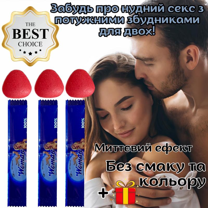 Возбудители для двоих Виагра Оригинал «*********» Мгновенное действие, Долгий эффект Обратите внимание! В набор входит 3 мужские таблетки (пролонгатор и укрепляют потенцию) и 3 женских стика (вызывают желание секса и усиливают ощущения в процессе) Плюс приятный ПОДАРОК: МУЖСКОЙ или ЖЕНСКИЙ возбудитель на пробу. Уточняйте во время оформления заказа, какой подарок предпочтительнее. **Мужской Возбудитель:** Жаждете преобразить вашу сексуальную жизнь и достичь новых высот страсти? Наш мощный мужской возбудитель - ваш верный спутник в этом увлекательном путешествии к интенсивным ощущениям. Разработанный с использованием передовых технологий, он обещает не просто возбуждение, а настоящий взрыв энергии и наслаждения в каждом вашем сексуальном эксперименте. Этот продукт - это не просто еще один препарат на полках магазинов. Он предлагает не только мгновенное возбуждение, но и стабильную и долгую эрекцию, которая превратит каждую вашу близость в незабываемый опыт. И самое главное - он абсолютно безопасен для вашего здоровья и не вызывает неприятных побочных эффектов. Этот мужской возбудитель - ваш шанс преобразить вашу сексуальную жизнь к лучшему. Доверьтесь его мощи и эффективности, и вы обретете новые грани удовольствия и уверенности в себе. Не упустите возможность улучшить вашу интимную жизнь - приобретите мощный мужской возбудитель прямо сейчас и почувствуйте разницу! **Женский Возбудитель:** Мечтаете о более ярких и страстных моментах в вашей интимной жизни? Наш мощный женский возбудитель - ваш надежный компаньон в достижении сексуального удовлетворения. Разработанный с учетом всех потребностей современной женщины, он обещает разбудить в вас страсть и желание, делая каждый ваш интимный момент запоминающимся и насыщенным. Этот женский возбудитель - это не просто еще один продукт на рынке. Он предлагает не только увеличение сексуального влечения, но и усиление ощущений, чтобы каждая ваша близость была настоящим праздником страсти. И самое важное - он абсолютно безопасен для вашего здоровья и не вызывает привыкания. Этот женский возбудитель - ваш шанс насладиться всеми прелестями интимной близости. Доверьтесь его мощи и эффективности, и вы обретете новые грани удовольствия и уверенности в себе. Позвольте себе испытать все радости сексуальной жизни - приобретите мощный женский возбудитель прямо сейчас и готовьтесь к волнующим ощущениям! Инструкция для женских стиков: одна ампула - одна доза. Добавлять в любую жидкость, кроме кипятка, объемом от 50 до 200 грамм. Максимальная дозировка в сутки - 2 ампулы. С алкоголем совместимы. Инструкция для мужских таблеток: принимать не более одной таблетки в сутки за 10-15 минут до полового акта. Совместимы с алкоголем в небольших количествах. Максимальная дозировка - 1 таблетка в сутки. Эффект проявляется при наличии сексуальной стимуляции. С алкоголем совместимы. *Доставка по всей Украине; *Предоплата не требуется; *Заказ можно оформить через *****/********/******** *Помощь в подборе препаратов; *Широкий ассортимент мужских и женских возбудителей; *Полная анонимность 100%.
