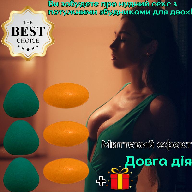 Возбудители Виагра для двоих Оригинал «********» Мгновенного действия Обратите внимание! В набор входит 3 мужские таблетки (пролонгатор и укрепляют потенцию) и 3 женские таблетки (вызывают желание секса и усиливают ощущения в процессе) Плюс приятный ПОДАРОК: МУЖСКОЙ или ЖЕНСКИЙ возбудитель на пробу. Уточняйте во время оформления заказа, какой подарок предпочтительнее. Мужские таблетки Ищете способ поднять вашу сексуальную жизнь на новый уровень и придать отношениям свежесть? Представляем вашему вниманию мощный мужской возбудитель в таблетках - ваш путь к ярким и насыщенным моментам в постели. Этот инновационный препарат, также известный как "Мужская Виагра", создан для того, чтобы помочь вам достичь уверенности и удовольствия во время сексуальных контактов. Что делает этот мужской пролонгатор таким эффективным? Его уникальная формула, разработанная с использованием передовых научных достижений, направлена на увеличение кровотока к половым органам, обеспечивая крепкую и стабильную эрекцию. Это позволяет вам и вашему партнеру наслаждаться более продолжительными и интенсивными сексуальными встречами. Одним из главных преимуществ этого возбудителя является его безопасность для здоровья. Натуральные ингредиенты, входящие в его состав, минимизируют риск побочных эффектов, что делает его идеальным выбором для мужчин всех возрастов. Не упускайте возможность оживить вашу интимную жизнь и достичь новых высот удовольствия. Откройте для себя новый уровень близости и наслаждения с этим мощным мужским пролонгатором, который поможет вам и вашему партнеру создать волнующие и незабываемые моменты в общении. Женские таблетки Ваши интимные моменты заслуживают лучшего, и наш мощный женский возбудитель поможет вам достичь невероятных ощущений и наслаждения. Этот продукт -- ваш верный компаньон в путешествии к новым уровням сексуальной гармонии и удовлетворения. Женская виагра в таблетках открывает перед вами двери к миру невероятных сексуальных возможностей. Мы понимаем, что безопасность вашего опыта является нашим приоритетом. Поэтому наш продукт прошел самые строгие проверки качества и безопасности, чтобы вы могли наслаждаться своими интимными моментами с полной уверенностью. Одним из основных преимуществ нашего женского возбудителя является его эффективность без привыкания. Вы можете использовать его в любое время, не беспокоясь о возможных негативных последствиях для вашего здоровья или отношений. Откройте для себя новые возможности сексуального блаженства с нашим уникальным женским возбудителем. Доверьтесь нам, и вы обнаружите, что ваша интимная жизнь может быть еще более удивительной и насыщенной, чем вы когда-либо предполагали. Инструкция для женских таблеток: принимать не более одной таблетки в сутки за 10-15 минут до полового акта. Совместимы с алкоголем в небольших количествах. Максимальная дозировка - 1 таблетка в сутки. Эффект проявляется при наличии сексуальной стимуляции. С алкоголем совместимы. Инструкция для мужских таблеток: принимать не более одной таблетки в сутки за 10-15 минут до полового акта. Совместимы с алкоголем в небольших количествах. Максимальная дозировка - 1 таблетка в сутки. Эффект проявляется при наличии сексуальной стимуляции. С алкоголем совместимы. *Доставка по всей Украине; *Предоплата н