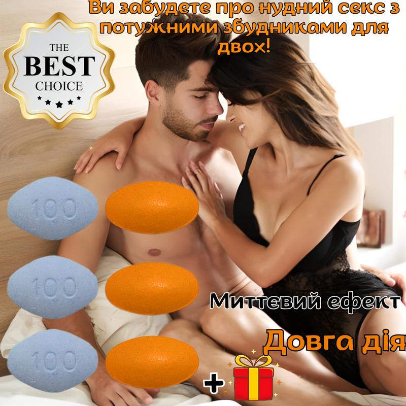 Возбудители Виагра для двоих Оригинал «******» Для мощных оргазмов и долгого секса Обратите внимание! В набор входит 3 мужские таблетки (пролонгатор и укрепляют потенцию) и 3 женские таблетки (вызывают желание секса и усиливают ощущения в процессе) Плюс приятный ПОДАРОК: МУЖСКОЙ или ЖЕНСКИЙ возбудитель на пробу. Уточняйте во время оформления заказа, какой подарок предпочтительнее. Мужские таблетки Иногда в суете повседневной жизни мы забываем о важности интимных отношений и страсти в них. В такие моменты мощный мужской возбудитель в таблетках становится настоящим спасением. Этот продукт, также известный как "Мужская Виагра", создан для того, чтобы помочь мужчинам преодолеть преграды на пути к наслаждению и удовлетворению. Что делает этот мужской пролонгатор особенным? Его совершенная формула, разработанная с использованием передовых технологий и научных открытий, направлена на увеличение кровотока к половым органам, обеспечивая крепкую и стабильную эрекцию. Это дарит возможность наслаждаться долгими и интенсивными сексуальными встречами. Одним из важнейших преимуществ этого возбудителя является его безопасность для здоровья. Сбалансированный состав, основанный на натуральных компонентах, снижает риск нежелательных побочных эффектов, что делает его идеальным выбором для мужчин, ценящих свое здоровье. Не упускайте возможности оживить вашу интимную жизнь и достичь новых пиков удовольствия. Попробуйте этот мощный мужской пролонгатор и откройте для себя мир более насыщенных и удовлетворительных сексуальных впечатлений. Женские таблетки Увлекательное путешествие по миру удовольствия начинается с нашего женского возбудителя. Этот продукт стал эффективным спутником для многих женщин, которые стремятся раскрыть новые грани своей сексуальности. Женская виагра в таблетках -- это не просто средство, это возможность погрузиться в мир страсти и наслаждения. Мы гарантируем высочайшее качество и безопасность нашего продукта. Наш женский возбудитель разработан с использованием самых передовых технологий и проверен на безопасность в лабораторных условиях. Наслаждайтесь своими интимными моментами с уверенностью в надежности нашего продукта. Одним из главных преимуществ нашего женского возбудителя является его способность приносить удовольствие без риска привыкания. Вы можете использовать его по вашему желанию, не беспокоясь о нежелательных побочных эффектах. Позвольте себе насладиться новыми ощущениями и эмоциями с нашим уникальным женским возбудителем. Откройте для себя новый мир интимной близости и наслаждения, который станет источником радости и удовлетворения для вас и вашего партнера. Инструкция для женских таблеток: принимать не более одной таблетки в сутки за 10-15 минут до полового акта. Совместимы с алкоголем в небольших количествах. Максимальная дозировка - 1 таблетка в сутки. Эффект проявляется при наличии сексуальной стимуляции. С алкоголем совместимы. Инструкция для мужских таблеток: принимать не более одной таблетки в сутки за 10-15 минут до полового акта. Совместимы с алкоголем в небольших количествах. Максимальная дозировка - 1 таблетка в сутки. Эффект проявляется при наличии сексуальной стимуляции. С алкоголем совместимы. *Доставка по всей Украине; *Предоплата не требуется; *Заказ можно оформить чер
