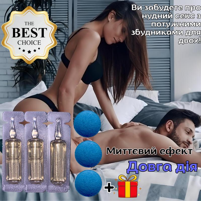 Набор возбудителей для пары Оригинал «********» Для мощного возбуждения и долгого секса Обратите внимание! В набор входит 3 мужские таблетки (пролонгатор и укрепляют потенцию) и 3 женских стика (вызывают желание секса и усиливают ощущения в процессе) Плюс приятный ПОДАРОК: МУЖСКОЙ или ЖЕНСКИЙ возбудитель на пробу. Уточняйте во время оформления заказа, какой подарок предпочтительнее. Мужские таблетки Представляем вашему вниманию инновационный мужской возбудитель, который переопределит ваше представление о интимной жизни. Наши таблетки - это не просто средство для улучшения эрекции, это ключ к новым ощущениям и удовольствиям в сексе. Этот мощный препарат, часто называемый "Мужская Виагра", не только увеличивает кровоток к половым органам, обеспечивая твердую и стабильную эрекцию, но и повышает сексуальное желание. Наш мужской пролонгатор позволяет вам контролировать длительность полового акта, делая его более насыщенным и удовлетворительным для обоих партнеров. Мы гордимся тем, что наш продукт создан на основе передовых научных исследований и прошел строгие клинические испытания, чтобы обеспечить максимальную безопасность и эффективность. Благодаря уникальной формуле, он не вызывает привыкания и не оказывает негативного воздействия на организм. Позвольте себе открыть новые горизонты в сексуальной жизни с нашим мужским возбудителем в таблетках. Насладитесь каждым мгновением интимной близости и достигните новых вершин удовольствия вместе с нами! Женские капли Каждая женщина заслуживает полноценной и насыщенной сексуальной жизни, полной ярких ощущений и удовольствия. Именно для этого был разработан уникальный женский возбудитель -- продукт, который поможет вам достичь новых вершин в интимной сфере. Этот мощный возбудитель представлен в виде капель, обладающих способностью быстро и эффективно стимулировать ваше сексуальное влечение. Что делает этот женский возбудитель особенным? Во-первых, его безопасность для здоровья. Благодаря тщательно подобранным ингредиентам, он не только безопасен, но и не вызывает привыкания, что делает его идеальным выбором для регулярного использования без опасений о негативных последствиях для вашего здоровья. Этот продукт также часто называют "женской виагрой в каплях" из-за его способности мгновенно разжигать страсть и желание. Он помогает вам наслаждаться более интенсивными и приятными ощущениями во время интимных моментов, делая каждую встречу запоминающейся и удовлетворительной. Приобретая этот женский возбудитель, вы делаете выбор в пользу своего удовольствия и наслаждения. Этот продукт представляет собой инновационное решение для женщин, желающих разнообразить свою сексуальную жизнь и ощутить новые эмоции. Позвольте себе открыть новые горизонты в сфере интимных отношений с помощью этого уникального женского возбудителя. Инструкция для женских стиков: одна ампула - одна доза. Добавлять в любую жидкость, кроме кипятка, объемом от 50 до 200 грамм. Максимальная дозировка в сутки - 2 ампулы. С алкоголем совместимы. Инструкция для мужских таблеток: принимать не более одной таблетки в сутки за 10-15 минут до полового акта. Совместимы с алкоголем в небольших количествах. Максимальная дозировка - 1 таблетка в сутки. Эффект проявляется при наличии сексуальной стимуляции. С алкоголем со