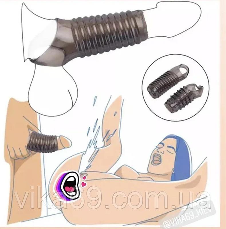 Насадка для чоловіків, які хочуть подарувати своїй обраниці яскравіші відчуття під час сексу. Насадка має незвичайний рельєф у вигляді різьблення, який забезпечить жінці незабутнє задоволення. Виконана з гіпоалергенної термопластичної гуми, абсолютно безпечної для здоров'я. Відкрита головка дозволить чоловікові також відчувати задоволення під час статевого акту і не втратити чутливість. В основі петля для мошонки, вона забезпечить надійну фіксацію девайса і продовжить статевий акт. Для посилення збудження перед прелюдією нанесіть на клітор і головку чЛена по краплі рідкого вібратора. 1 шт -299грн. 👉Або комплект з 2 шт-499грн. Розмір універсальний