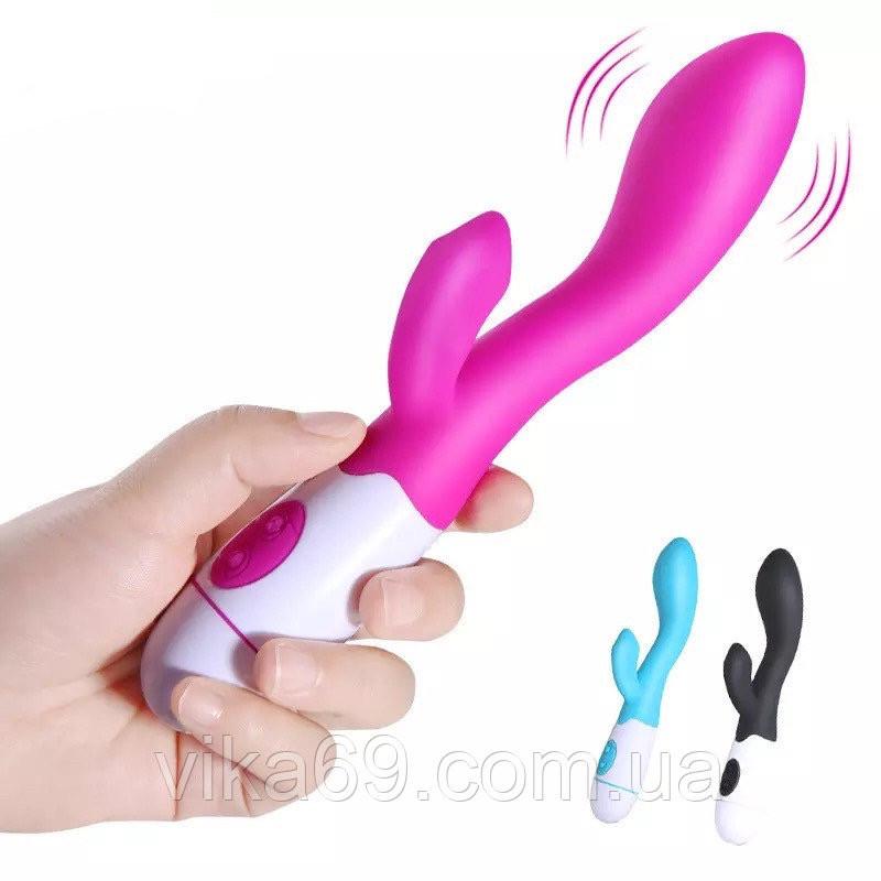 ### Вібратор зі стимулятором клітора з найніжнішого силікону, що забезпечує найреалістичніші відчуття та незабутнє задоволення Водонепроникний, забезпечений двома моторами. Перший розташований у голівці, а другий у відростку для стимуляції клітора. Керується за допомогою двох кнопок на рукоятці, що мають відповідні позначення. Перша - увімкнення або вимкнення, а друга - вибір одного з 30 режимів вібрації. Живлення: 2 батареї ААА (у комплект не входять) В наявності колір: рожевий, чорний, блакитний.