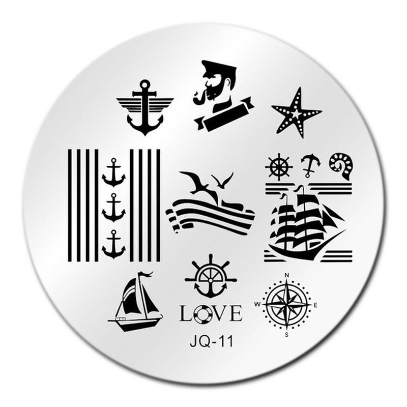 Стемпинг ― особая техника украшения ногтей. Многообразие рисунков позволит найти дизайн по вкусу каждой девушке. Техника нанесения очень проста, так что пользоваться может как профессионал, так и новичок. На одном таком диске умещается от 4 до 8 (иногда 10) различных узоров. Он играет роль трафарета. Выполнена такая деталь из металла, на ней выгравированы узоры (они будут в процессе создания маникюра заполняться лаком для стемпинга). Также Вам понадобится скребок для удаления излишков лака с диска, штамп для переноса рисунка на поверхность ногтя и несколько лаков для стемпинга. Применение: - Возьмите диск и на выбранный рисунок нанесите лак для стемпинга. Он должен проникнуть во все детали рисунки, даже в самые мелкие. Старайтесь наносить лак равномерным и довольно толстым слоем, чтобы рисунок был чётким. - Затем возьмите скребок, прислоните его к рисунку, слегка надавив, и уверенным движением удалите остатки лака так, чтобы он остался только в углублениях. При необходимости такое движение следует повторить. - Теперь возьмите штамп, прислоните его к диску, прижмите и подержите несколько секунд, чтобы узор зафиксировался на поверхности. - Следующий этап - перенесение рисунка на ноготь. Прислоните штамп к ногтю и перекатывающим движением нанесите узор на поверхность. Повторять движения не нужно, иначе рисунок будет смазанным и нечётким. - Приступайте к созданию рисунка только тогда, когда основной лак на ногтях полностью высохнет!!! Смотреть другие диски серии "JQ" Диски других серий